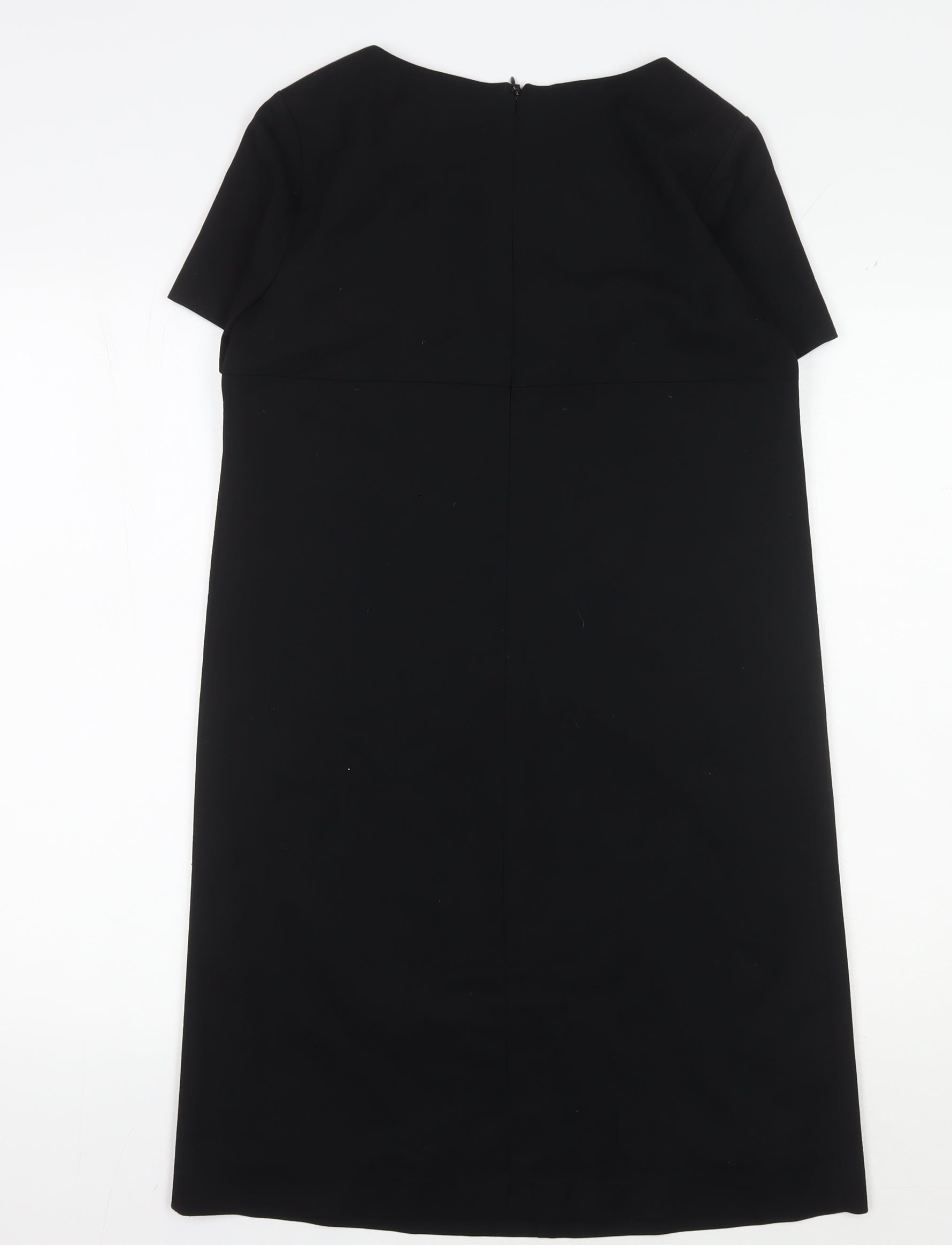 Discover timeless elegance with this classic black sheath dress by Next, designed for the modern woman who appreciates both style and comfort. Perfectly crafted for a sleek fit, this knee-length dress highlights your silhouette with its flattering round neckline and half sleeves, making it an ideal choice for professional settings or evening events. The woven fabric, composed of polyester, viscose, and elastane, ensures a comfortable fit with just the right amount of stretch for all-day wear. With its sophisticated style and understated elegance, this dress maintains a modern yet classic appeal, suitable for any season. The easy zip closure at the back and machine washable fabric make it practical while maintaining a chic look. Perfect for workwear or formal events, this sheath dress embodies simplicity and grace, a must-have in every woman's wardrobe.