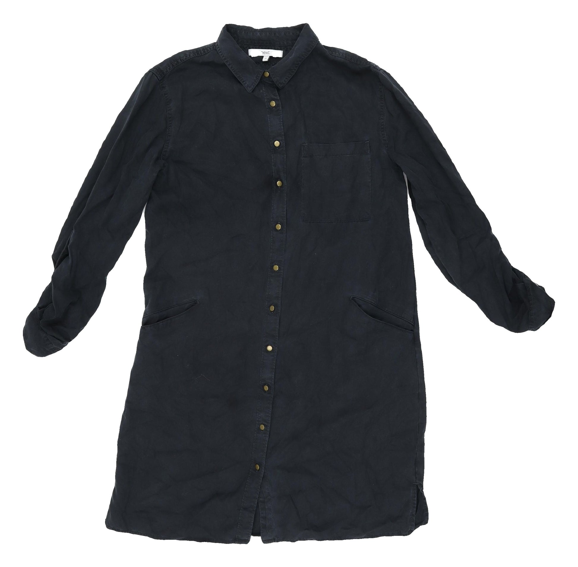 Step into effortless style with this versatile black shirt dress from NEXT. Perfectly crafted for a relaxed yet chic look, this dress is ideal for everyday wear, whether you're heading to the office or enjoying a weekend brunch. The dress features a classic collared neckline and long roll-tab sleeves, allowing for adjustable styling according to your preference. Its button-down closure adds a touch of sophistication, making it an elegant choice for casual outings. Made from 100% Tencel, this garment offers a lightweight and breathable fabric that drapes beautifully on the body, ensuring maximum comfort throughout the day. Additionally, it comes with practical pockets, enhancing its functionality and style. Designed for women in regular size type, this dress is tailored to flatter a size 10, offering a comfortable fit without compromising on style. With a solid black colour and no pattern, it can easily be paired with various accessories to create a customised look that suits your unique style. This dress has undergone slight fading, adding a touch of vintage charm without affecting its overall great condition. Machine washable for hassle-free care, it is ready to be your go-to outfit for multiple occasions in the autumn and spring seasons. Elevate your wardrobe with this essential piece today and enjoy the perfect blend of style, comfort, and practicality.