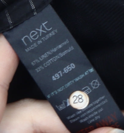 Explore a blend of comfort and elegance with this Next women's skirt. Crafted from a luxurious linen and cotton mix, this black skirt offers a classic, no-pattern look that complements any wardrobe. Available in size 8, it features a convenient zip closure, making it both stylish and practical. The skirt is suited for regular size type wearers, promising comfort and a great fit. Machine washable, it ensures easy maintenance, and its excellent condition speaks of its quality. Ideal for casual or semi-formal occasions, this skirt is a versatile addition to your collection. Its chic, modern design is perfect for various looks, offering endless styling possibilities. A must-have item for those who appreciate a balance of sophistication and simplicity in their outfits.