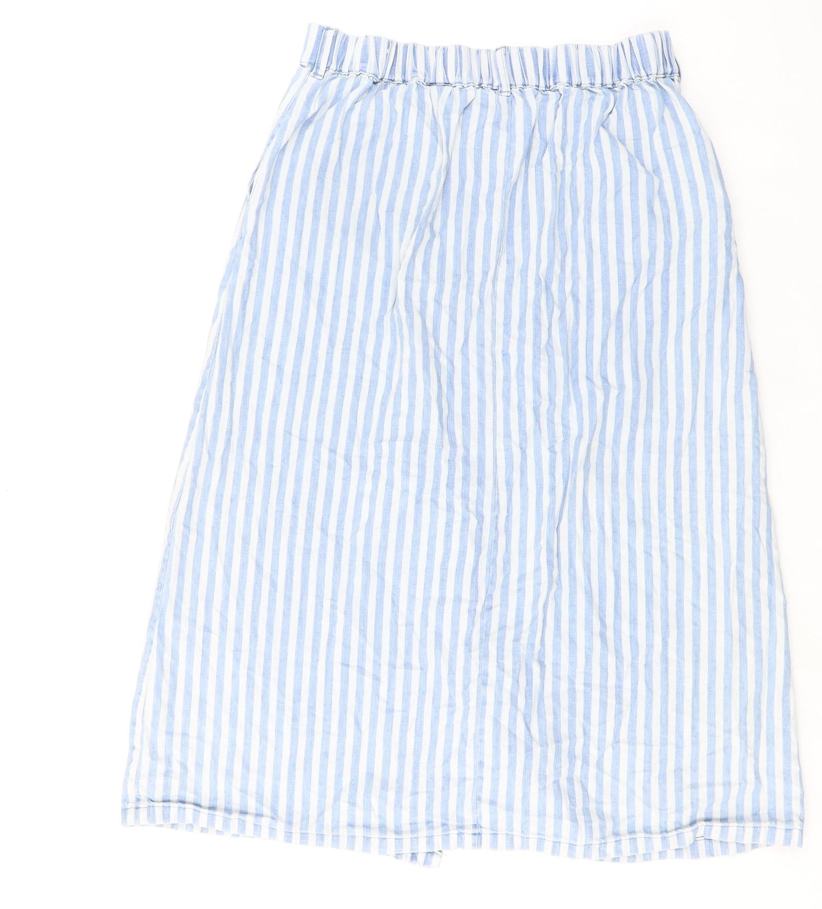 Womens Black Striped Cotton A-Line Skirt Size 10 Button