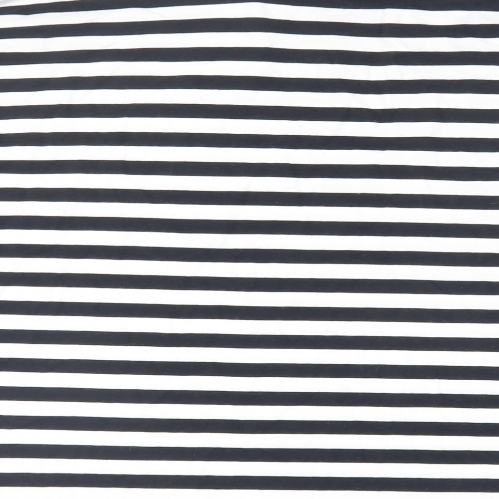 Womens Black Striped Cotton Basic T-Shirt Size M Crew Neck