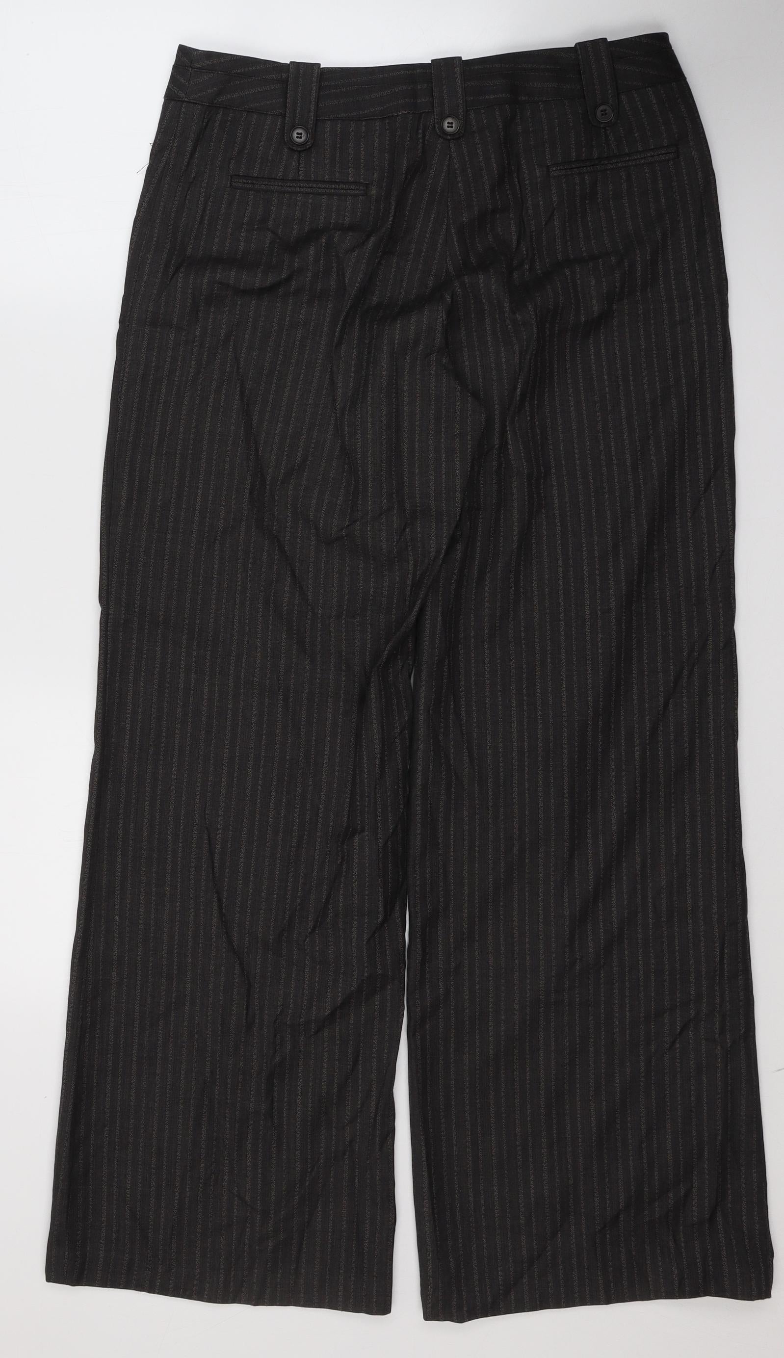 Womens Black Striped Polyester Trousers Size 12 L30 in Regular Button