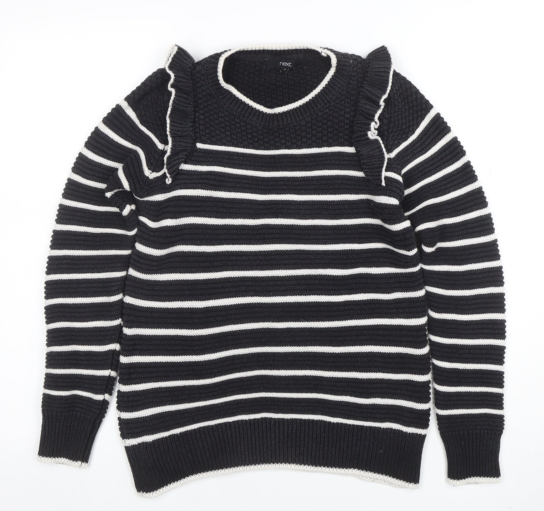 Next Women's Black Striped Ruffle Knit Jumper Size 8