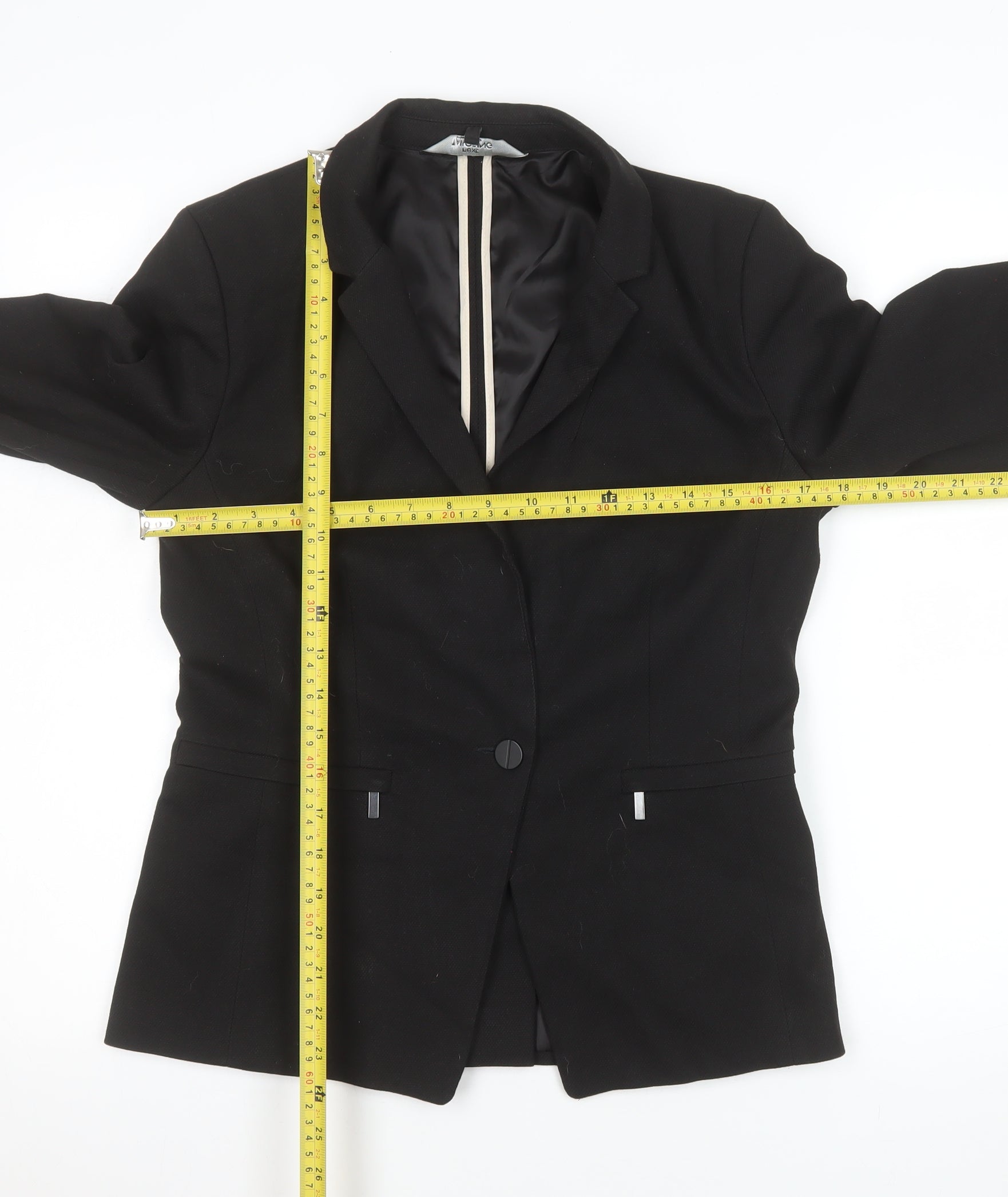 Elevate your smart-casual or professional wardrobe with this timeless black blazer from Next. Expertly designed for women, this tailored blazer in a UK size 10 offers a flattering silhouette that’s perfect for office wear, formal meetings, or evening engagements. Crafted from a premium woven fabric blend consisting of 64% polyester, 34% viscose, and 2% elastane, it ensures structure with just the right amount of stretch for comfort. The fully lined interior, made from 100% polyester, enhances the blazer’s wearability while maintaining a sleek outer appearance.This sophisticated single-breasted blazer features a classic one-button closure, long sleeves, and notch lapels—ideal for adding a refined touch to any outfit. Its streamlined cut works beautifully with trousers or a pencil skirt, making it a versatile piece for business or formal occasions. Tailored detailing, functional front pockets, and quality stitching reflect Next’s commitment to smart, contemporary design.In excellent pre-loved condition with light lint visible on inspection, this piece shows minimal previous wear and remains ready to wear. Pair it with a crisp white blouse for a polished professional look or layer it over a dress for elegant evening style. Suitable for autumn, spring, and winter seasons, this jacket will easily become a staple in your wardrobe rotation. A perfect choice for modern women seeking an effortlessly stylish and comfortable smartwear essential.Whether you’re dressing for a client meeting or a special occasion, this Next black blazer delivers understated class with practical comfort. A must-have for lovers of versatile tailoring.