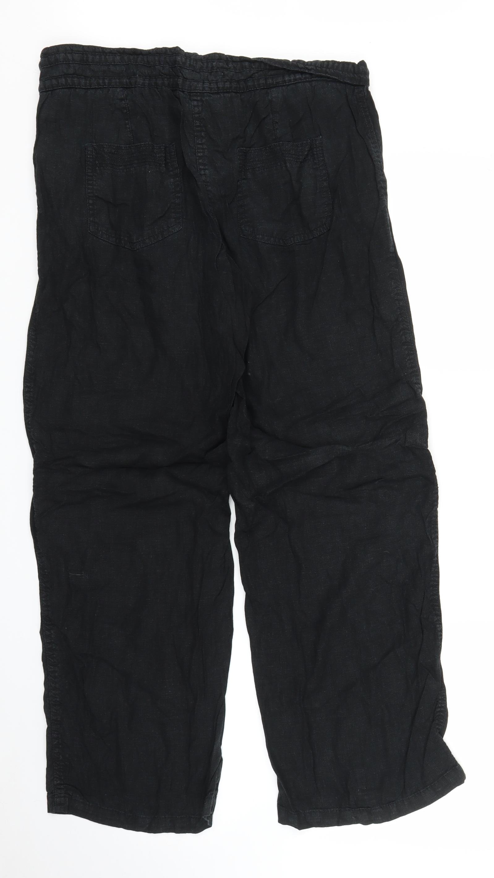 Next Women Black 14R Wide-Leg Cropped Trousers Polyester