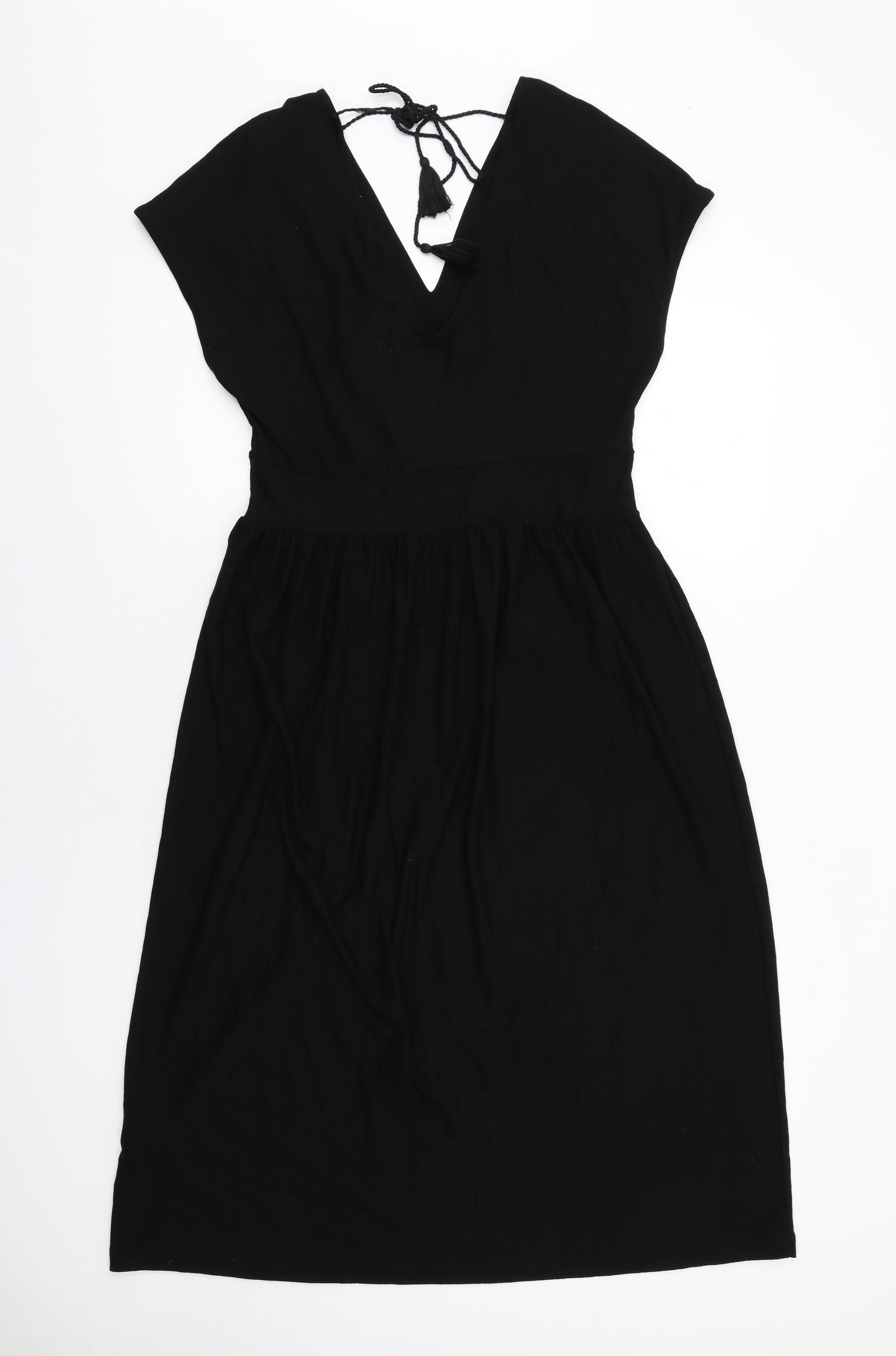 Womens Black Viscose A-Line Size 10 V-Neck Pullover