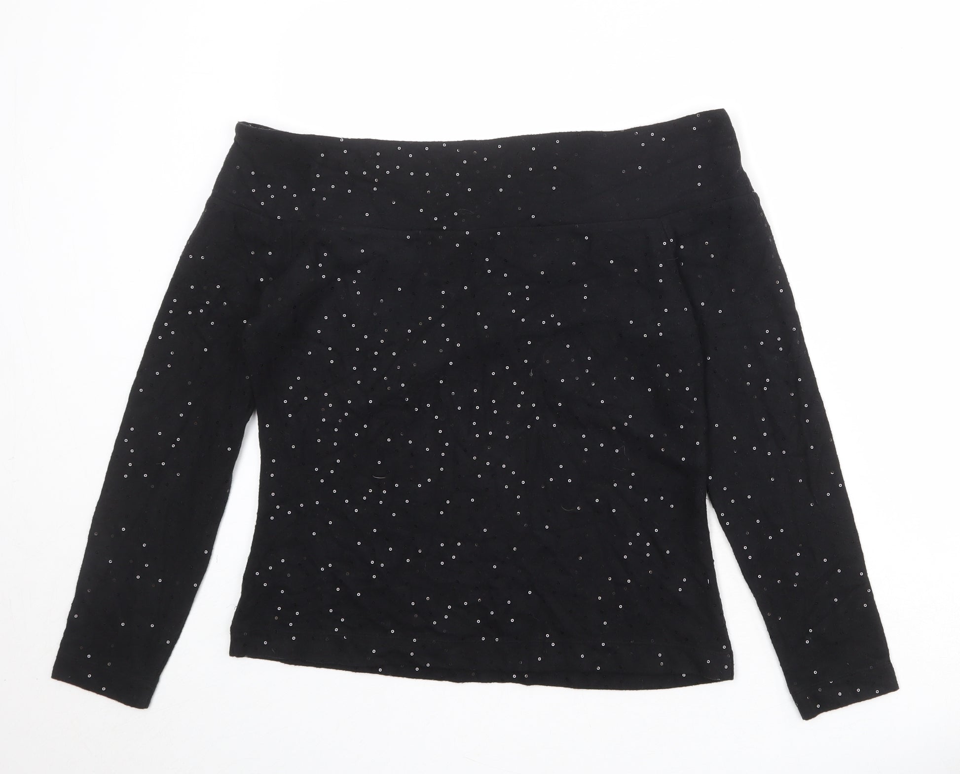 Womens Black Viscose Basic Blouse Size 14 Off the Shoulder