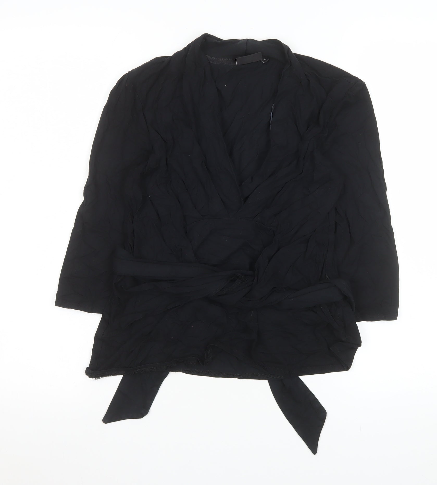 Next Womens Black Wrap Viscose Blouse Size 12 Long Sleeve