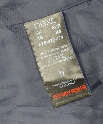 Step out in style with this elegant black jacket from Next, perfect for any casual outing. Made from a quality blend of 94% polyester, 4% viscose, and 2% elastane, this jacket ensures comfort and durability, making it a staple piece in any wardrobe. The sleek black colour paired with a modern zip accent adds a touch of sophistication, easily complementing various styles and outfits. Designed for women in size 16, it features a regular fit with long sleeves, ideal for everyday wear. While it's marked as 'Excellent' condition, there is slight lint present, typical of barely used items, ensuring you receive top-notch quality at a fraction of the new price. The jacket is lined with polyester to offer a comfortable feel. Whether you're heading to a coffee shop or running errands, this jacket serves as the perfect companion for all your casual adventures. Exclusive to Next, this piece reflects understated elegance, making it a must-have. Practical and easy care with professional dry clean, it's designed to keep you looking fresh with minimal effort. Grab this fabulous jacket today and elevate your casual wardrobe with an air of relaxed sophistication.