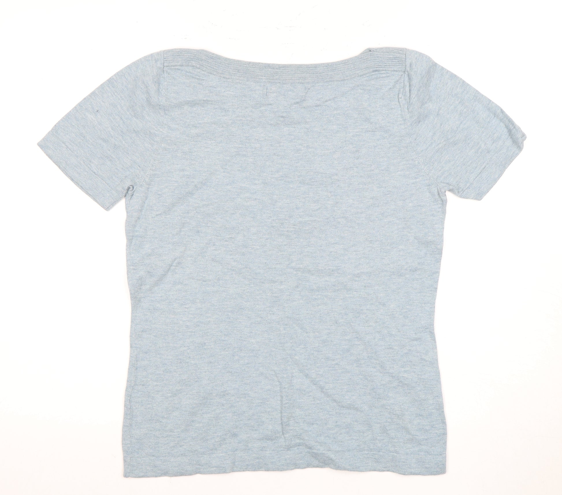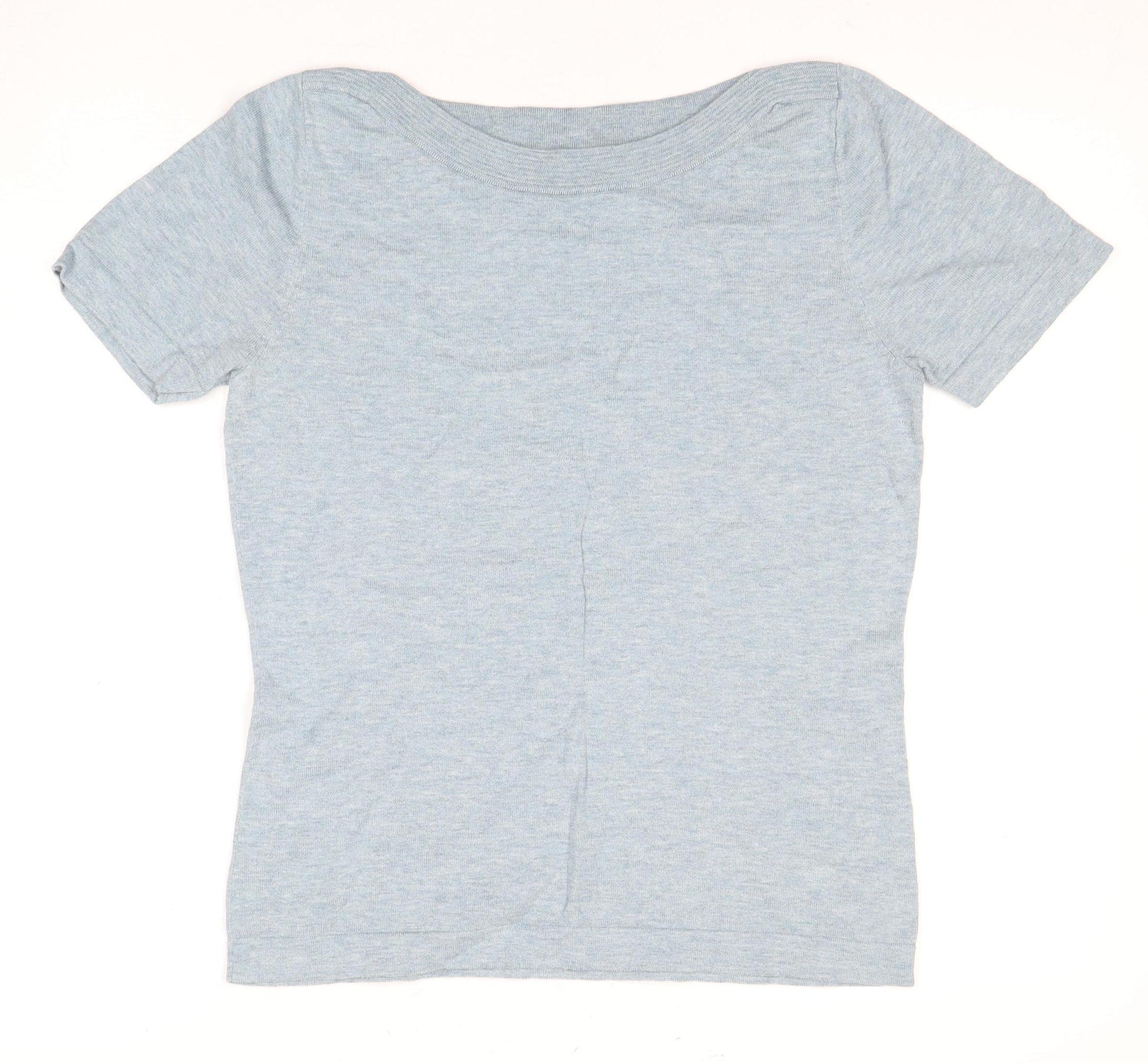Elevate your casual wardrobe with this Next Women's Blue Basic T-Shirt, perfectly crafted for everyday ease and style. Made from a breathable blend of cotton, nylon, and viscose, this T-shirt ensures comfort while retaining shape and softness. Its solid blue colour adds a versatile touch, seamlessly pairing with a variety of bottoms from jeans to skirts, perfect for all seasons. Designed with a classic round neck and short sleeves, this piece offers a relaxed fit suitable for any occasion, whether you’re heading to a casual outing or simply lounging at home. Its machine washable fabric makes it easy to care for, maintaining its fresh look with every wash. With a commitment to quality and style, this T-shirt benchmarks an ideal choice for women seeking comfort without compromising on flair. Despite being gently used, it remains in excellent condition, promising durability and a neat appearance. Update your essentials with a staple piece that combines functionality and timeless design, ensuring you make the most of your everyday activities with style. Embrace simplicity and elegance with this must-have T-shirt, now available at an unbeatable price.