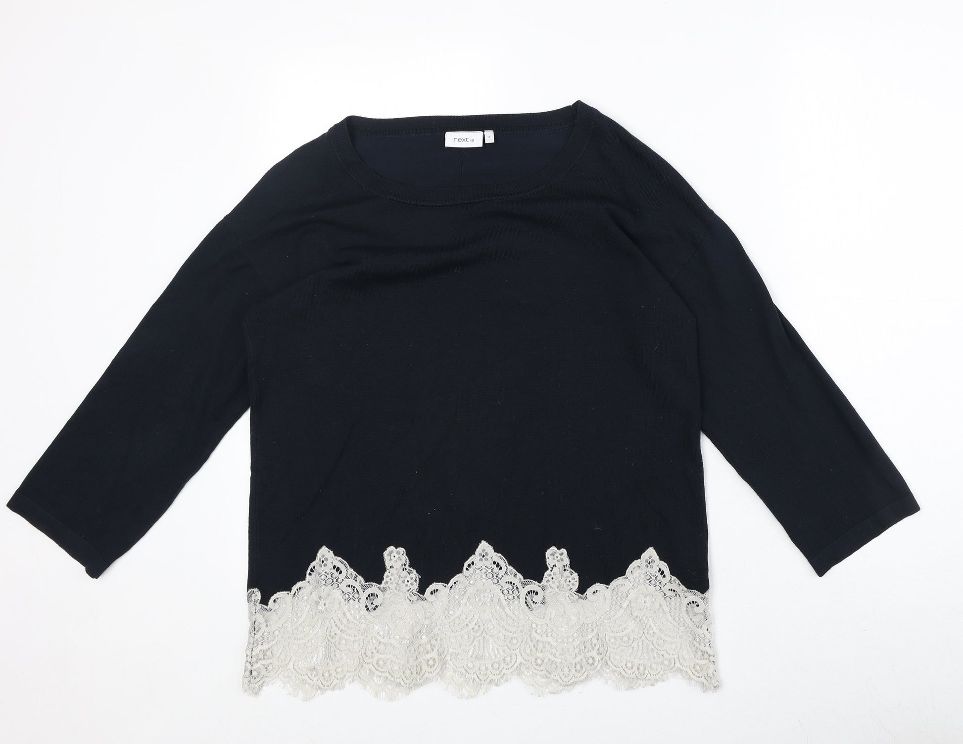 Womens Blue Boat Neck Viscose Pullover Jumper Size 12 - Lace Detail