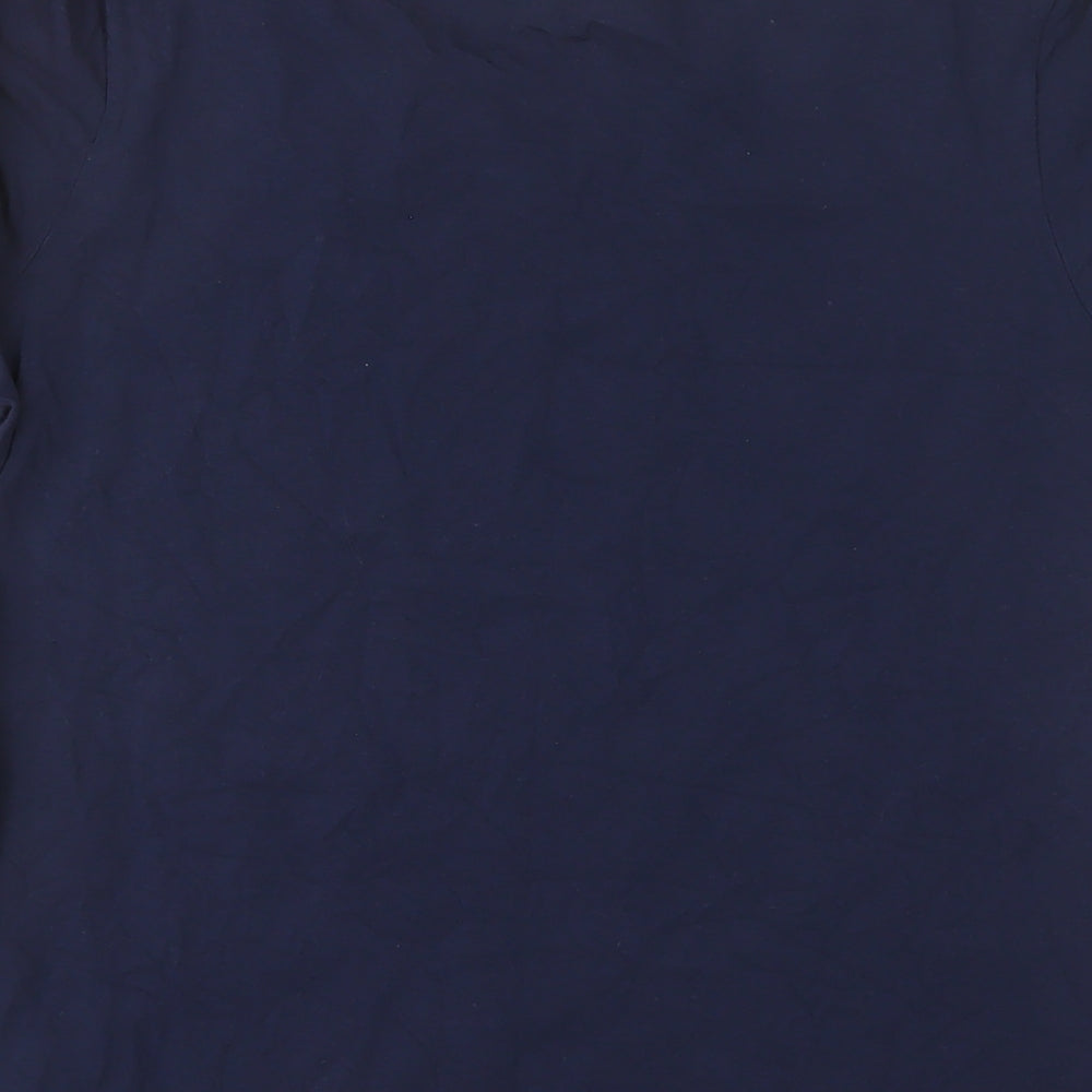 Womens Blue Cotton Basic T-Shirt Size 12 Boat Neck - Button
