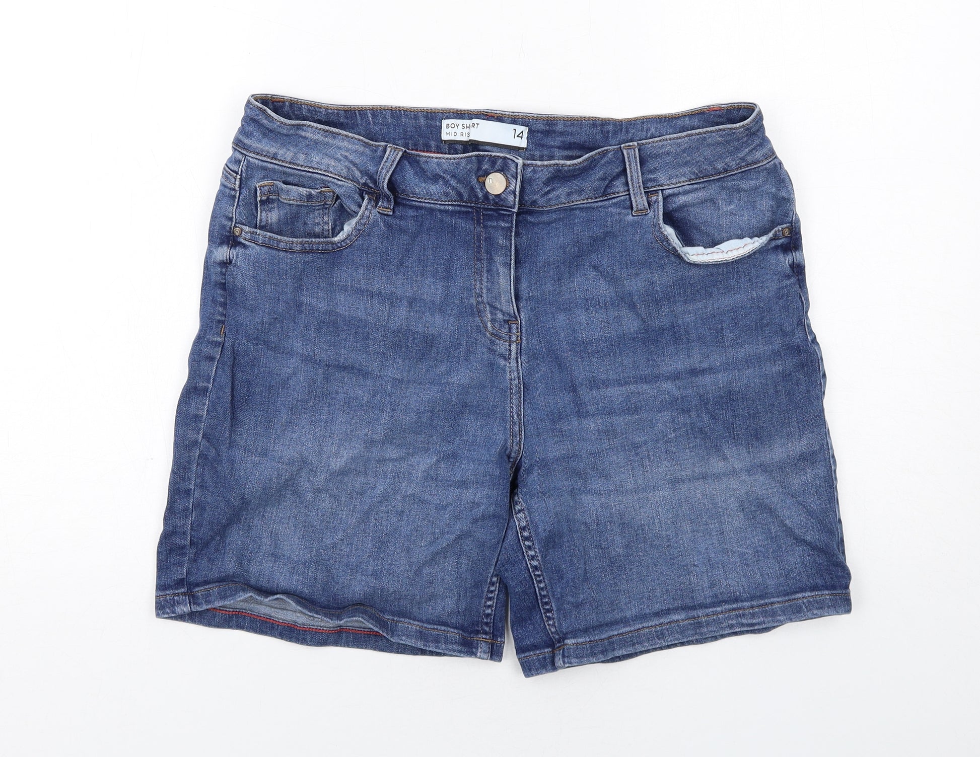 Womens Blue Cotton Boyfriend Shorts Size 14 Regular Zip