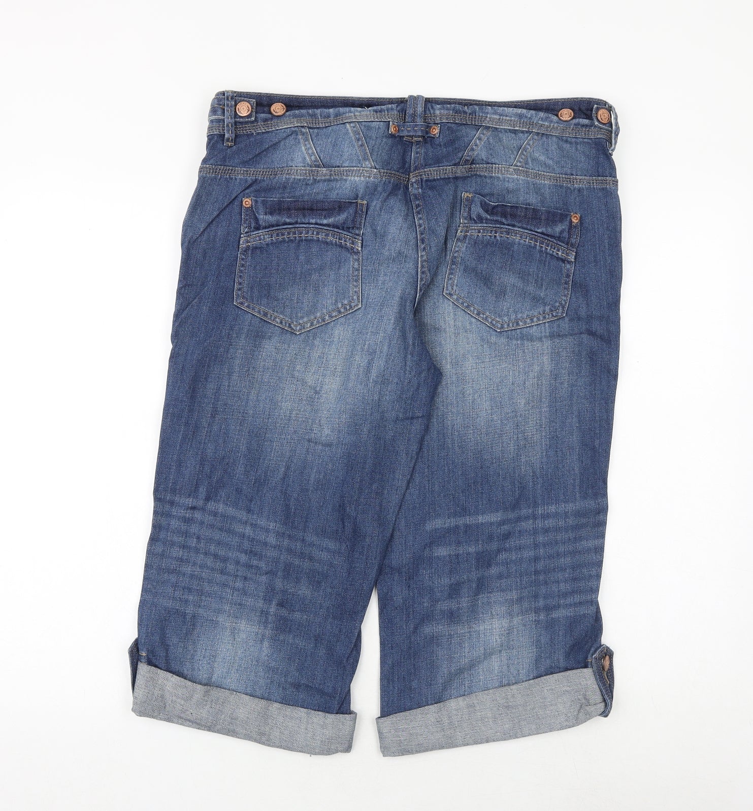 Womens Blue Cotton Cropped Jeans Size 14 Regular Zip
