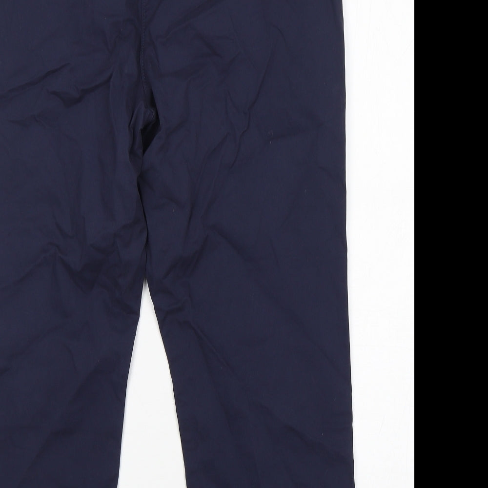 Womens Blue Cotton Cropped Trousers Size 14 L24 in Regular Button