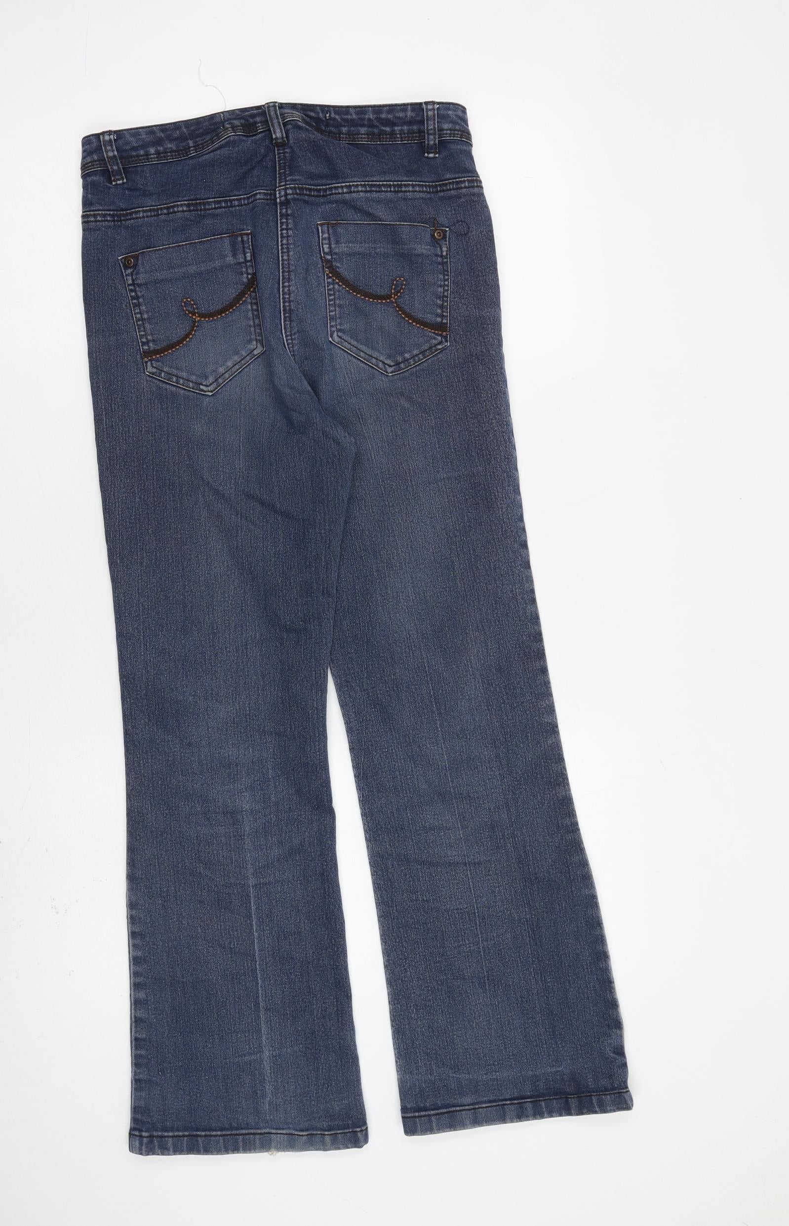 Womens Blue Cotton Flared Jeans Size 12 L28 in Regular Zip