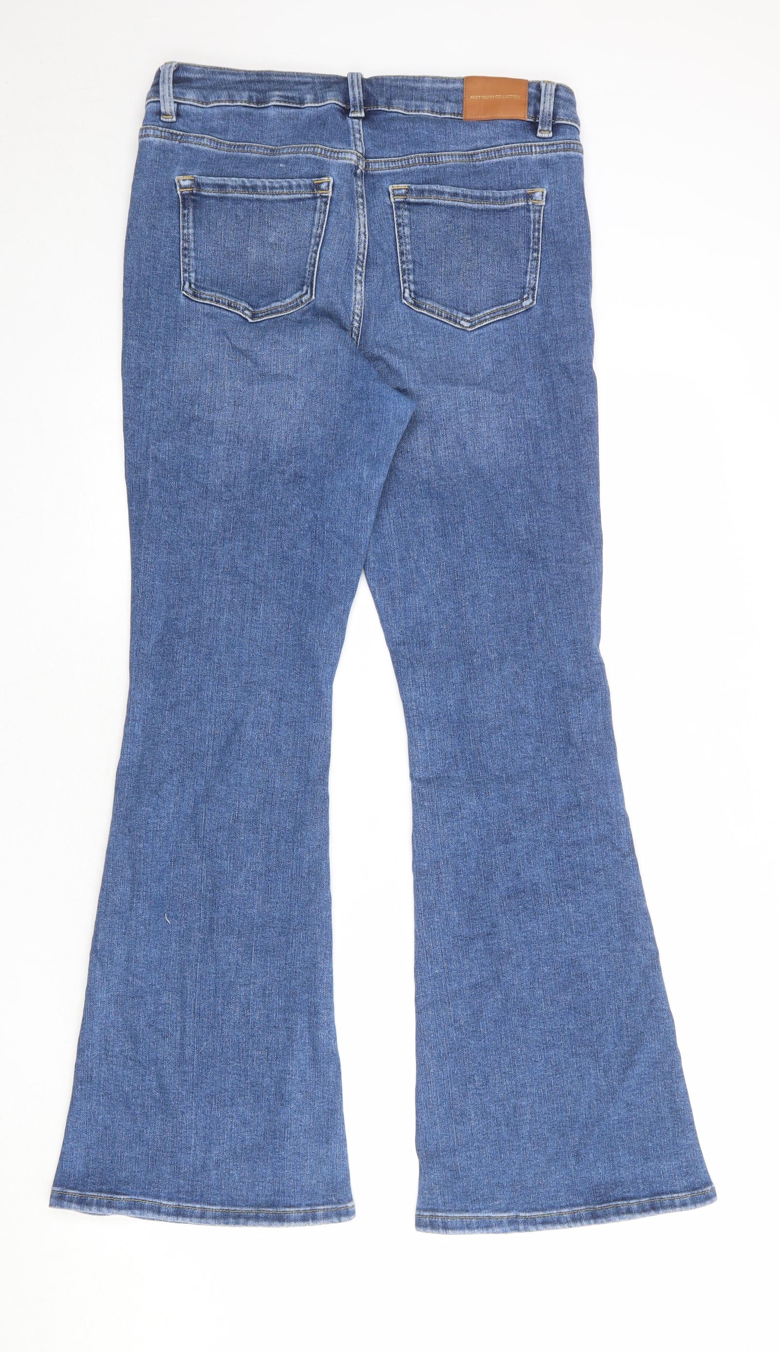 Womens Blue Cotton Flared Jeans Size 14 Regular Zip