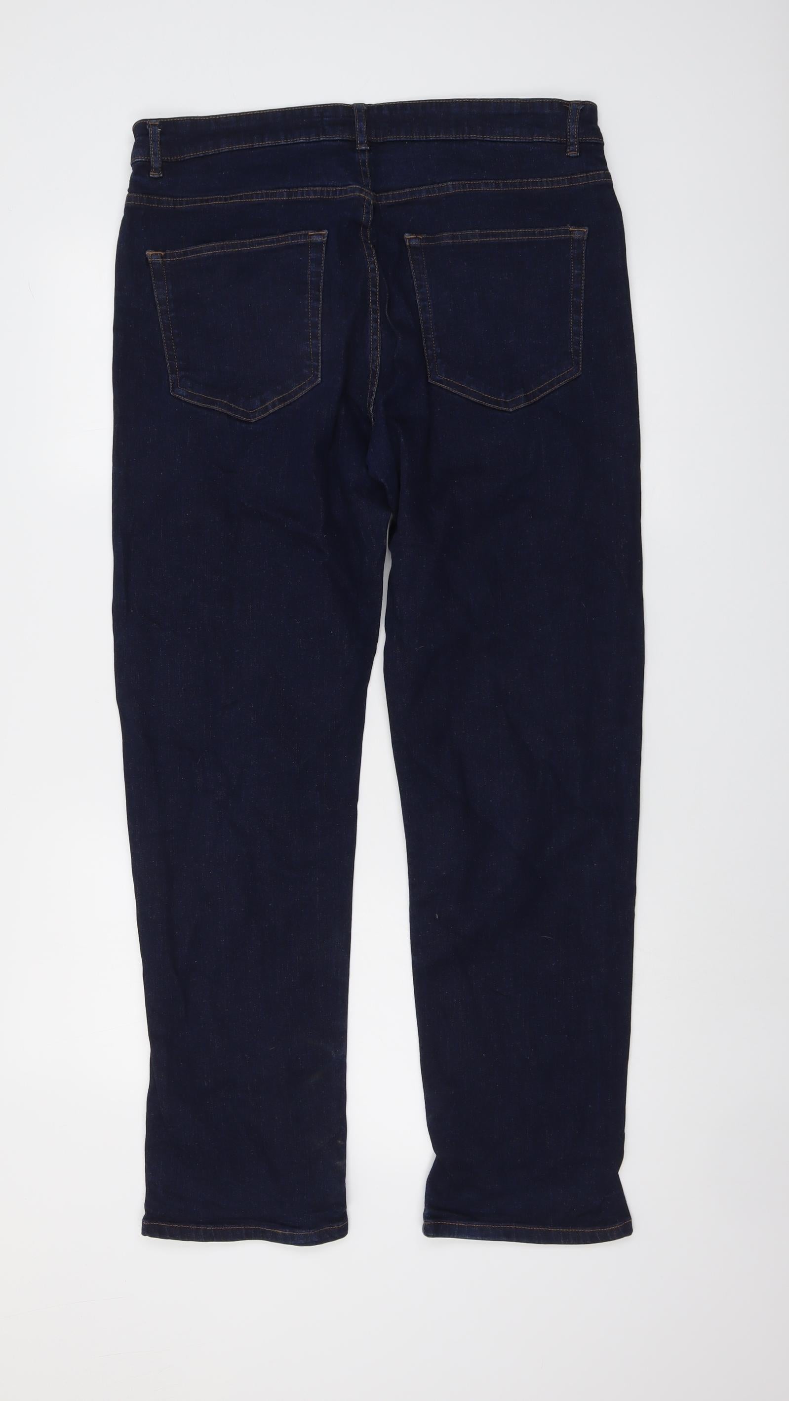 Womens Blue Cotton Straight Jeans Size 34 in L30 in Regular Button