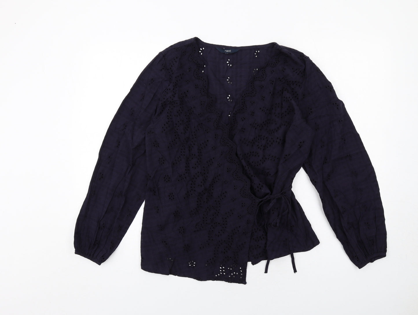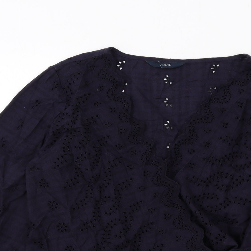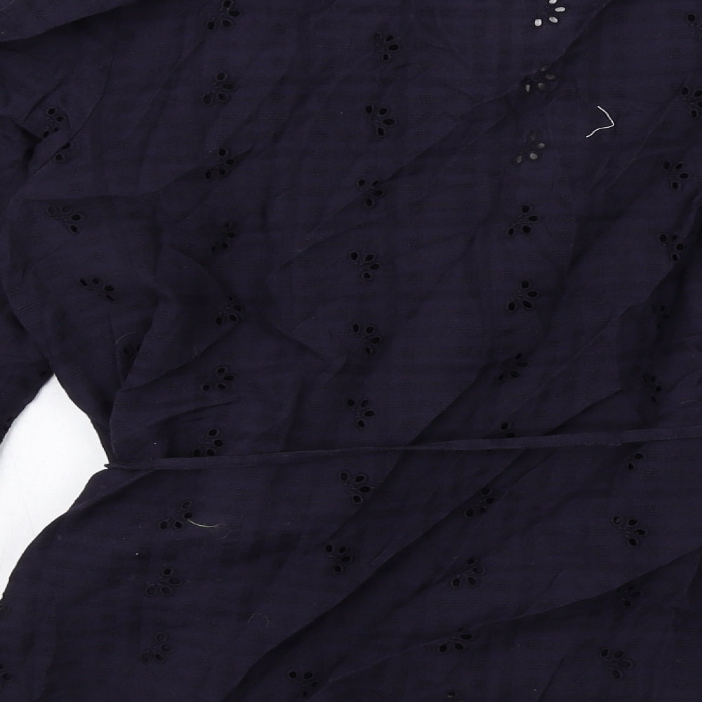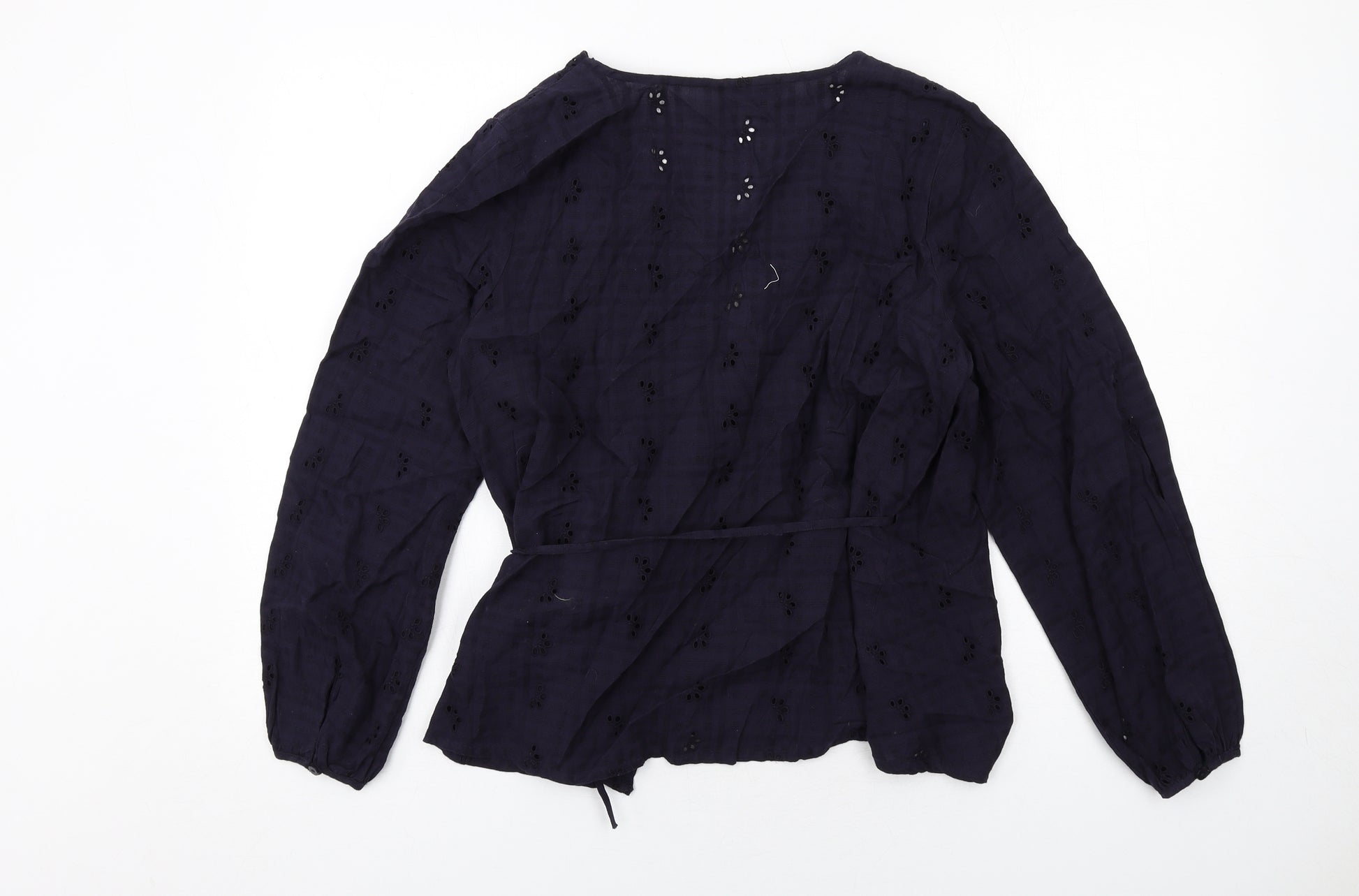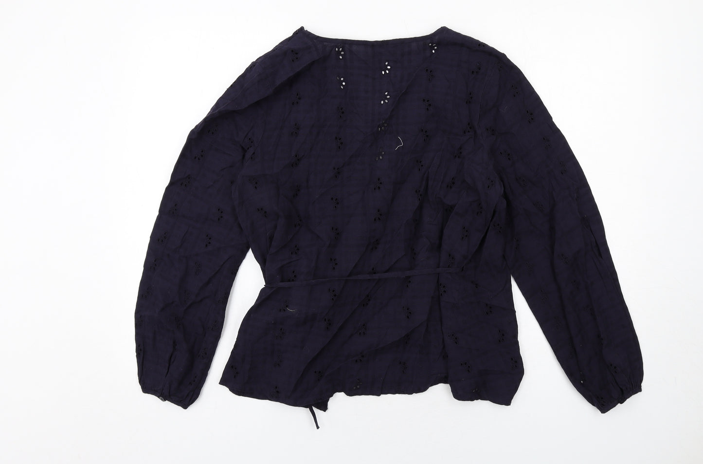 Womens Blue Cotton Wrap Blouse Size 14 V-Neck - Broderie Anglaise