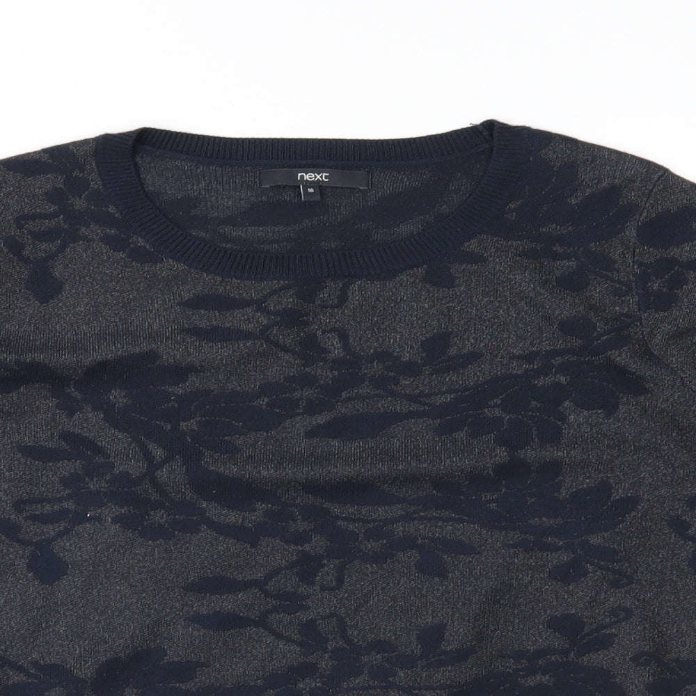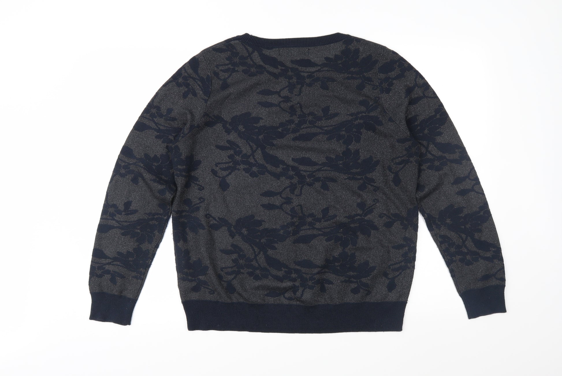 Womens Blue Floral Knit Pullover Jumper Size 16