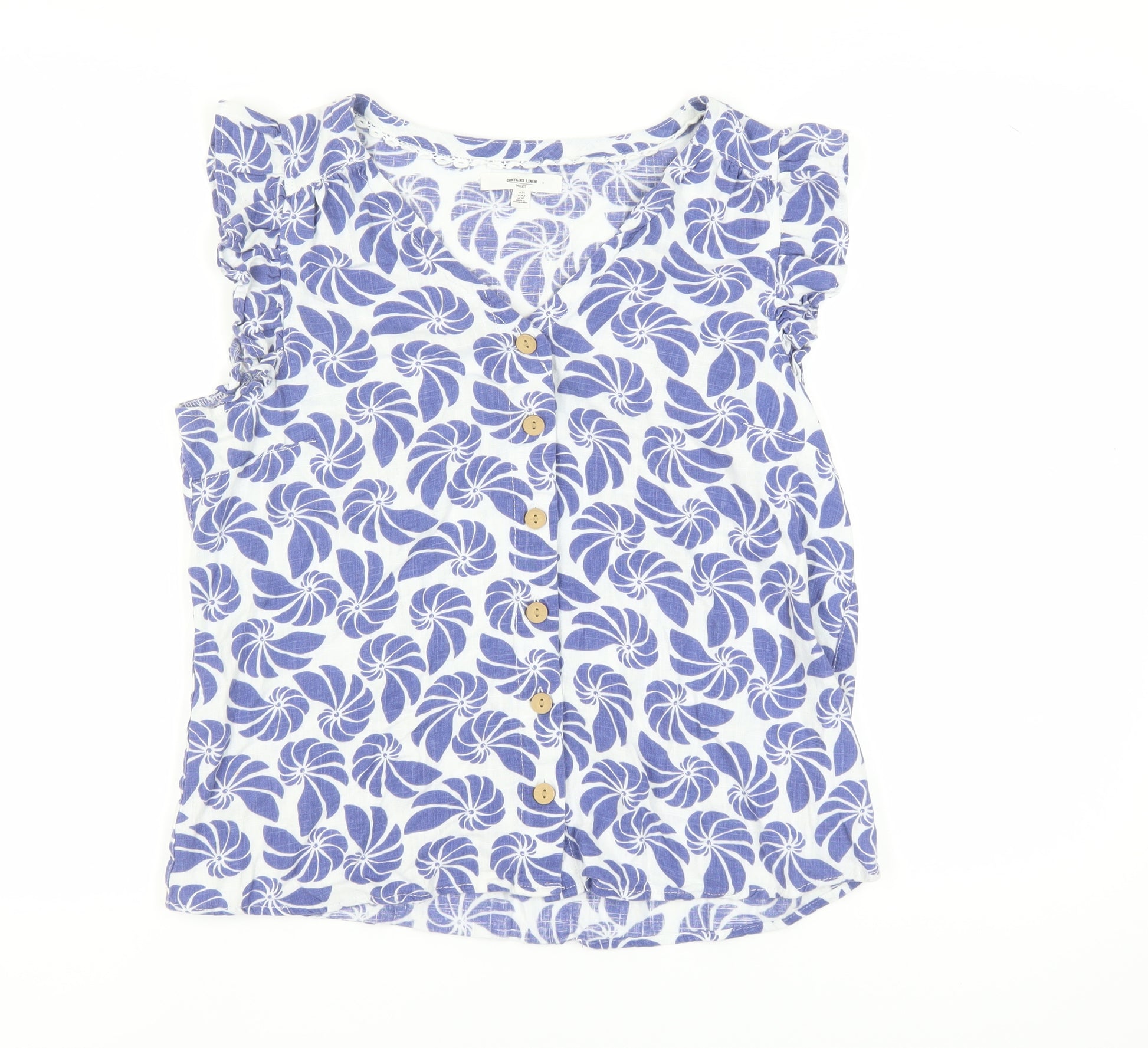 Next Women's Blue Floral V-Neck Sleeveless Blouse
