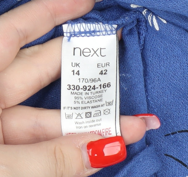 This elegant women's blue wrap blouse from Next features a charming floral pattern that is perfect for adding a touch of femininity to your everyday wardrobe. Designed with a flattering V-neck and stylish puff short sleeves, this blouse ensures comfort and a chic look for casual outings. Made from a blend of soft Jersey, Viscose, and Elastane, it offers excellent stretch and easy care. The button accents along the front add a touch of detail, making this blouse versatile for both spring and summer wear. Suitable for casual occasions, this wrap style blouse pairs effortlessly with jeans or skirts. With its regular fit, machine washable care instructions, and new with tags condition, it's a perfect addition to any wardrobe. Don't miss out on this stylish and practical top that combines comfort with on-trend style. Ideal for women seeking a timeless and fresh look, ready to be worn season after season.