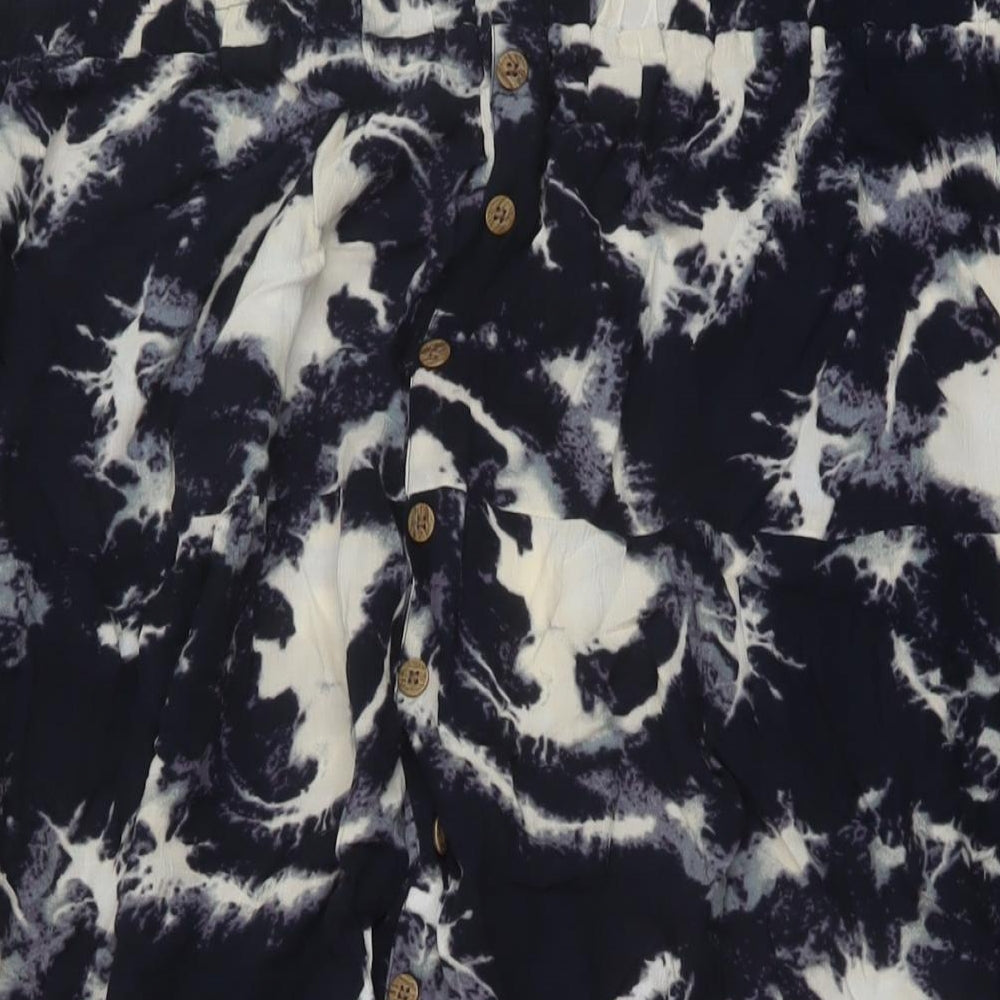 Womens Blue Geometric Polyester A-Line Skirt Size 20 Button
