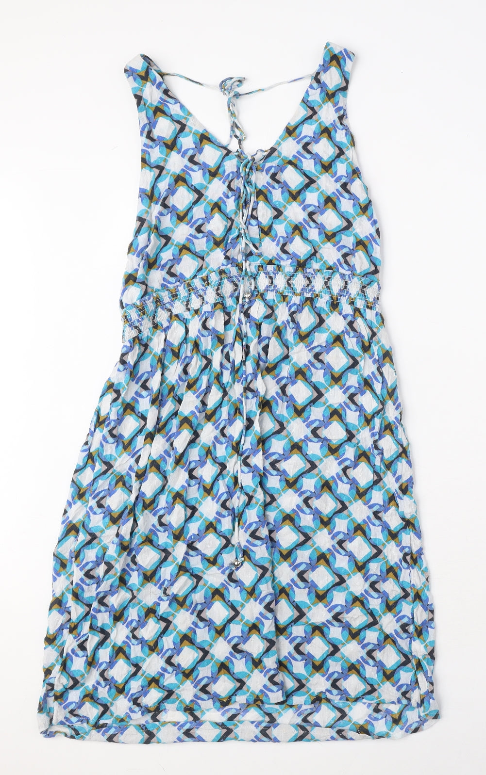 Womens Blue Geometric Viscose A-Line Size 14 V-Neck Tie - Open Back