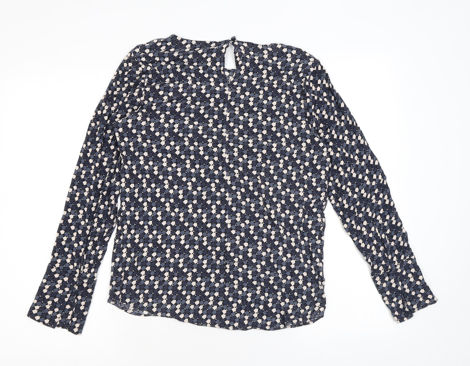 Womens Blue Geometric Viscose Basic Blouse Size 8 Round Neck