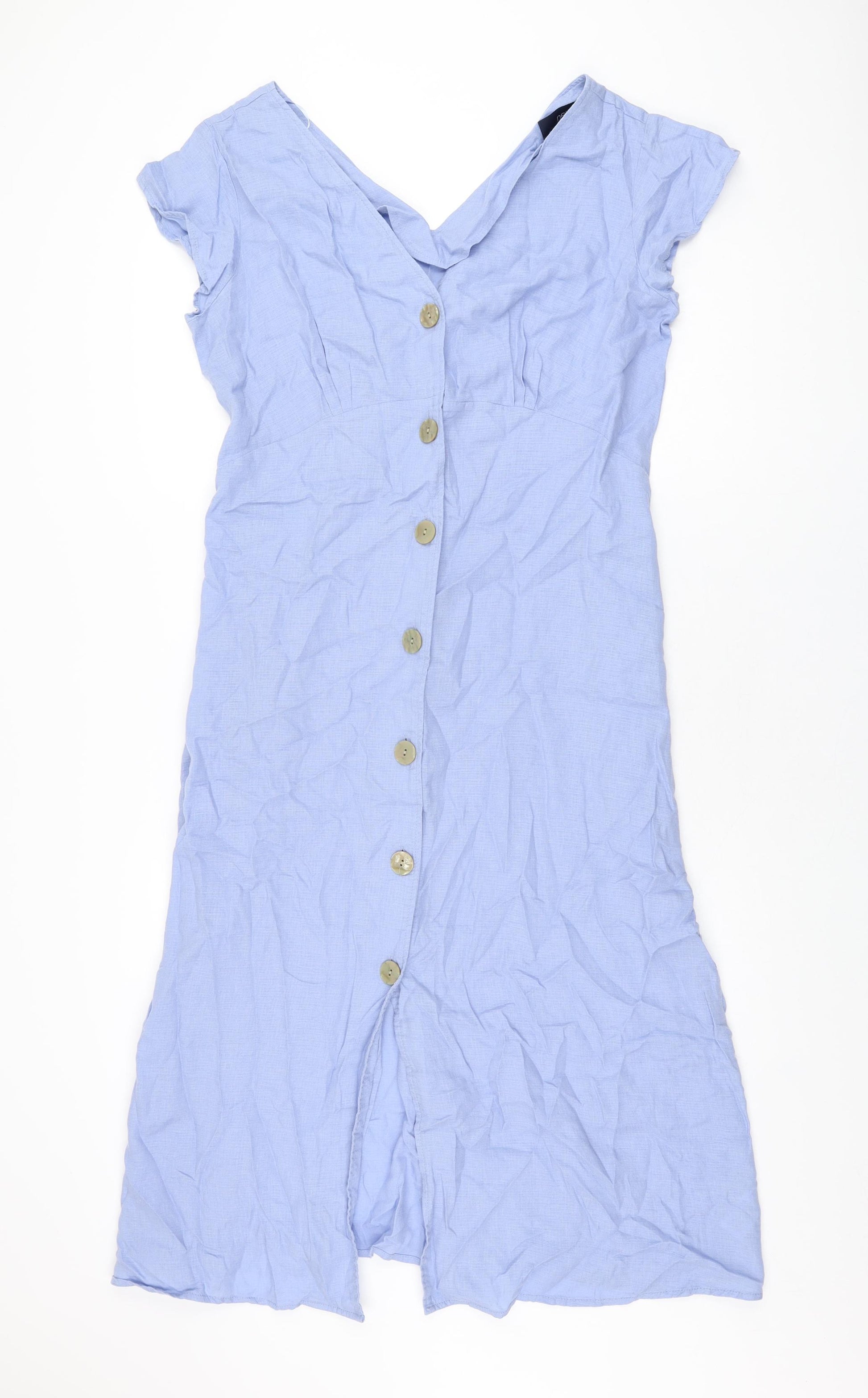Womens Blue Lyocell A-Line Size 14 V-Neck Button