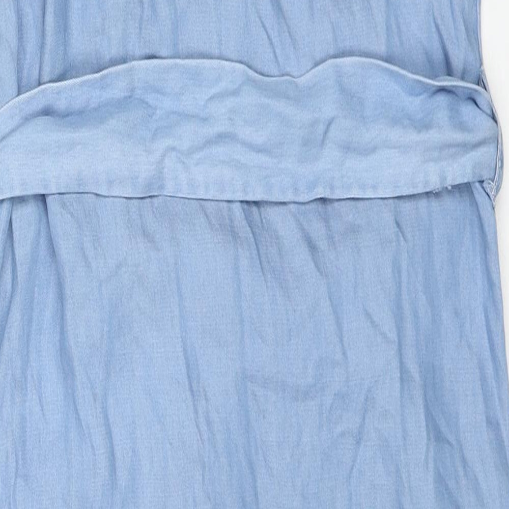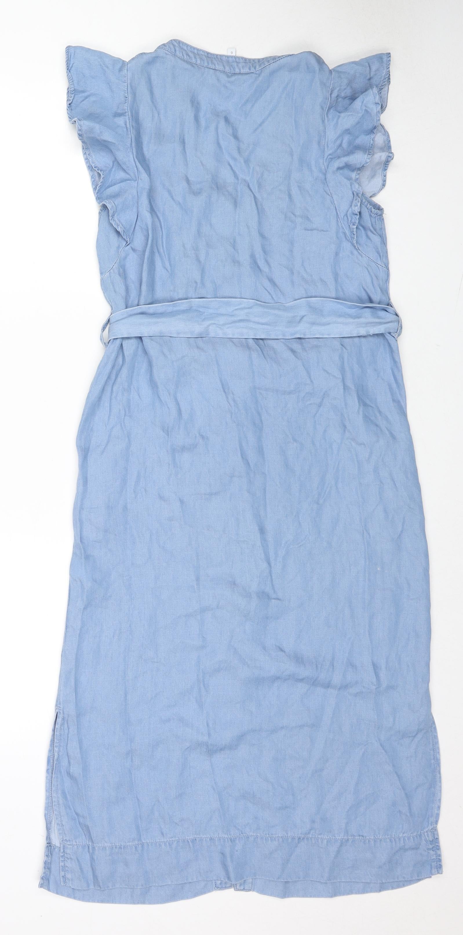Womens Blue Lyocell Shirt Dress Size 6 V-Neck Button