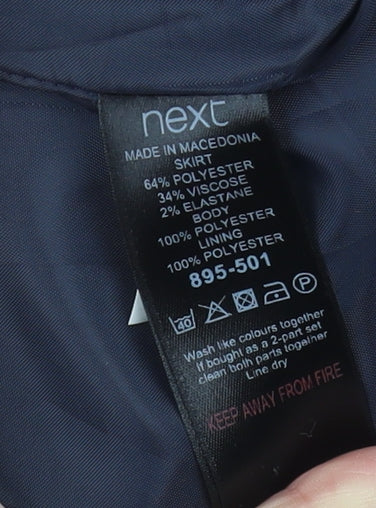 Elevate your wardrobe with this elegant blue sheath dress from Next, perfectly tailored for chic business settings or glamorous cocktail parties. Crafted from a premium blend of polyester, viscose, and elastane, this dress offers a comfortable fit with a touch of stretch, enhancing your silhouette. Ideal for women who love style and grace, this sleeveless piece features a round neckline and a zip closure for easy wear. Its lined design ensures a smooth and flattering finish. In pristine condition, it shows minimal signs of wear and works beautifully for various occasions, including weddings, formal events, and daily workwear. Enjoy the sophisticated refinement each time you wear this versatile sheath dress.