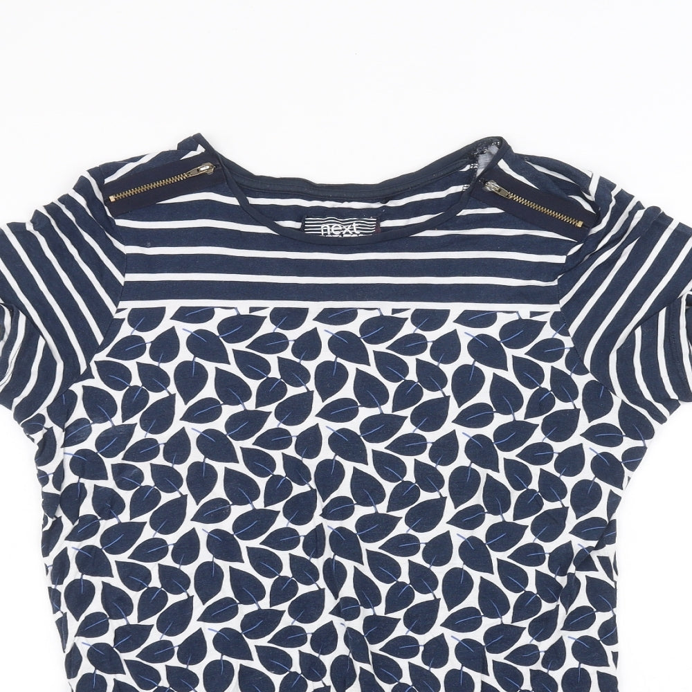 Next Women White Striped Short Sleeve Knit T-Shirt Size 14