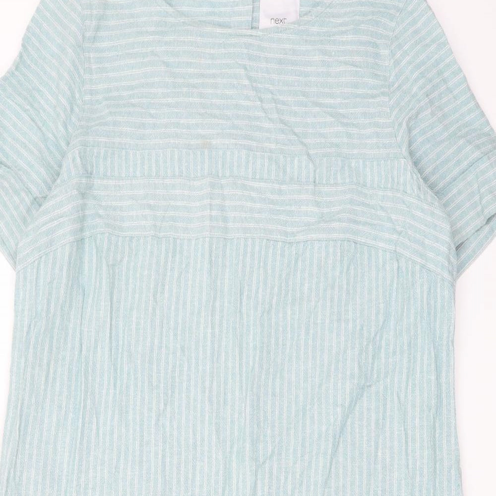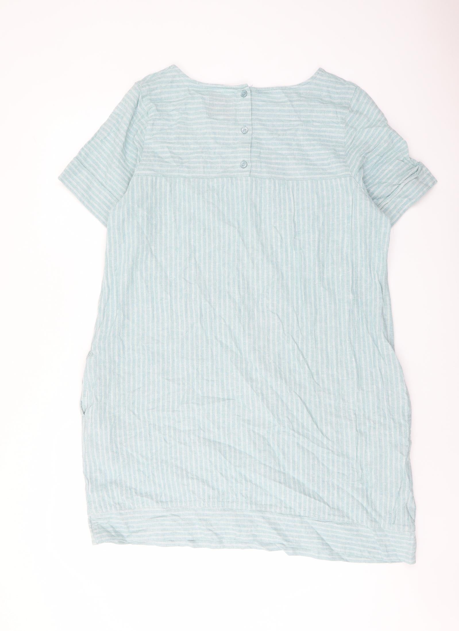 Womens Blue Striped Linen A-Line Size 18 Round Neck Button