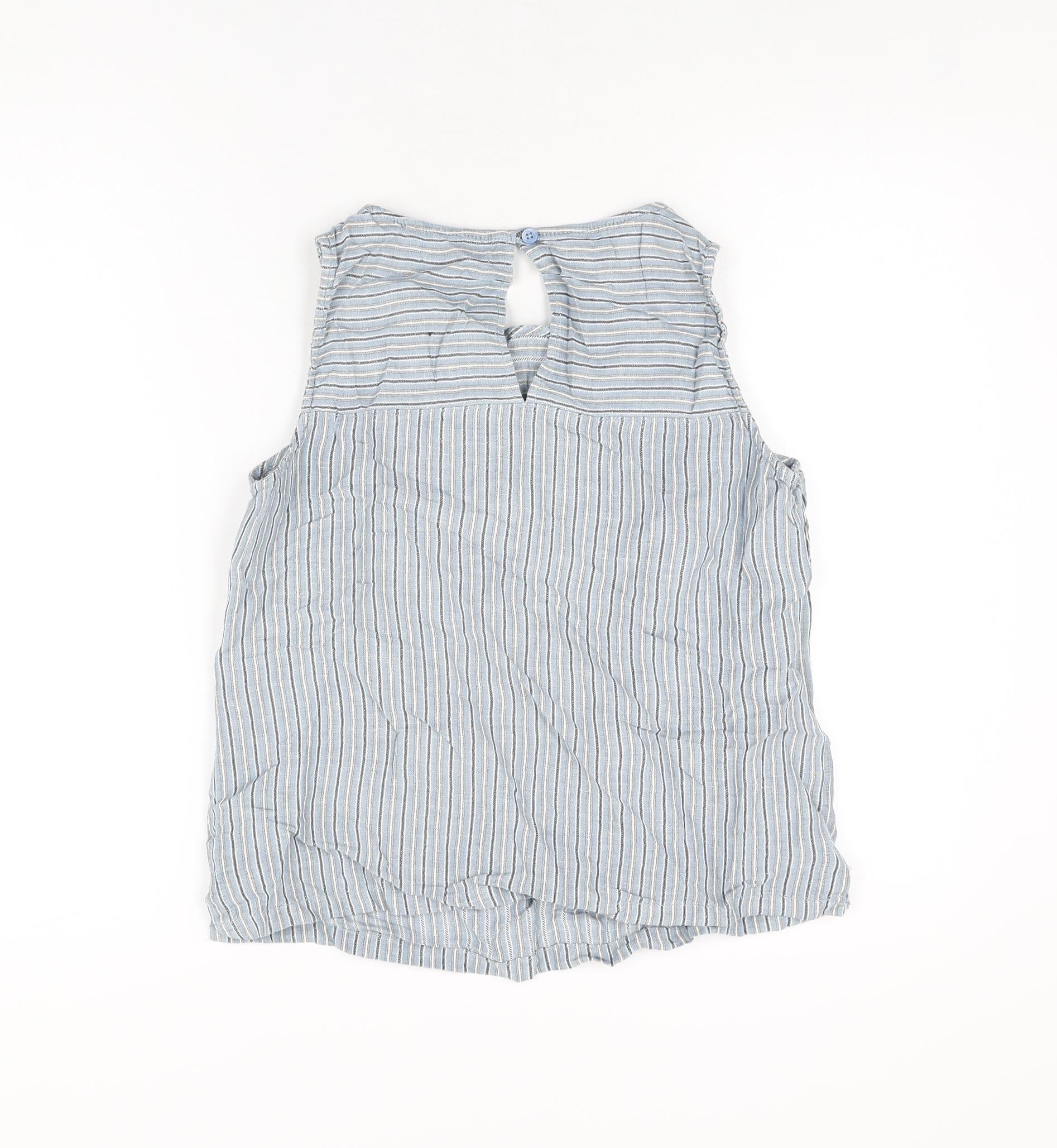 Womens Blue Striped Linen Basic T-Shirt Size 12 Round Neck