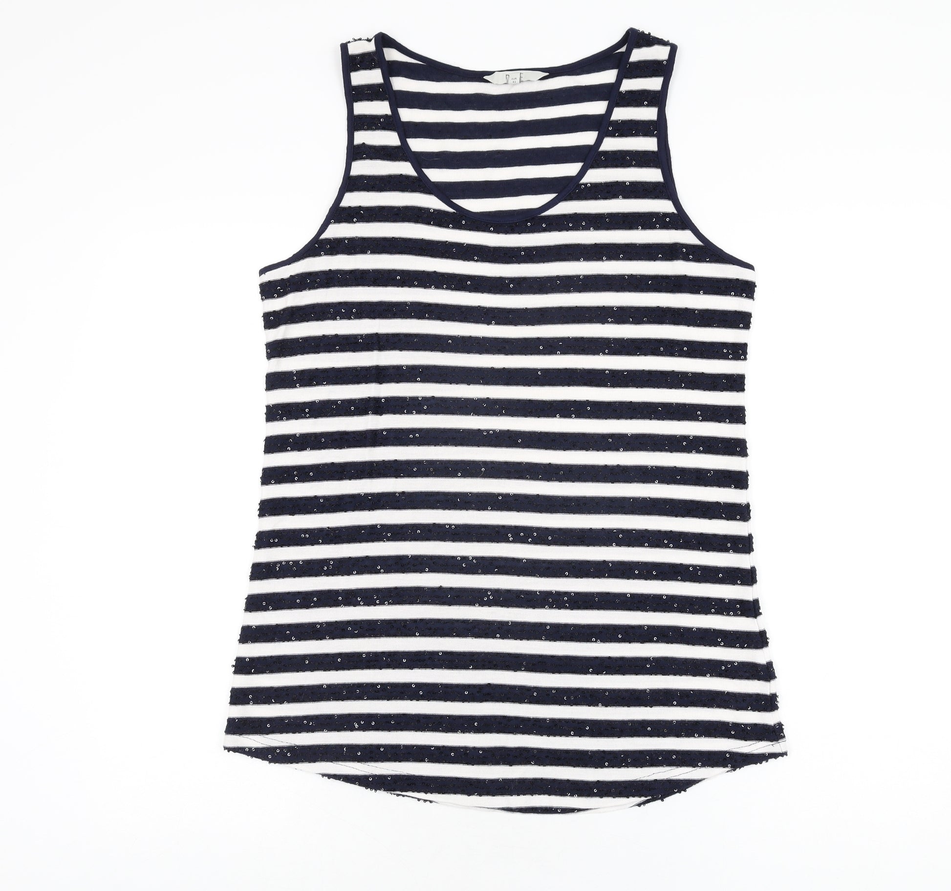Womens Blue Striped Polyester Basic T-Shirt Size 14 Scoop Neck