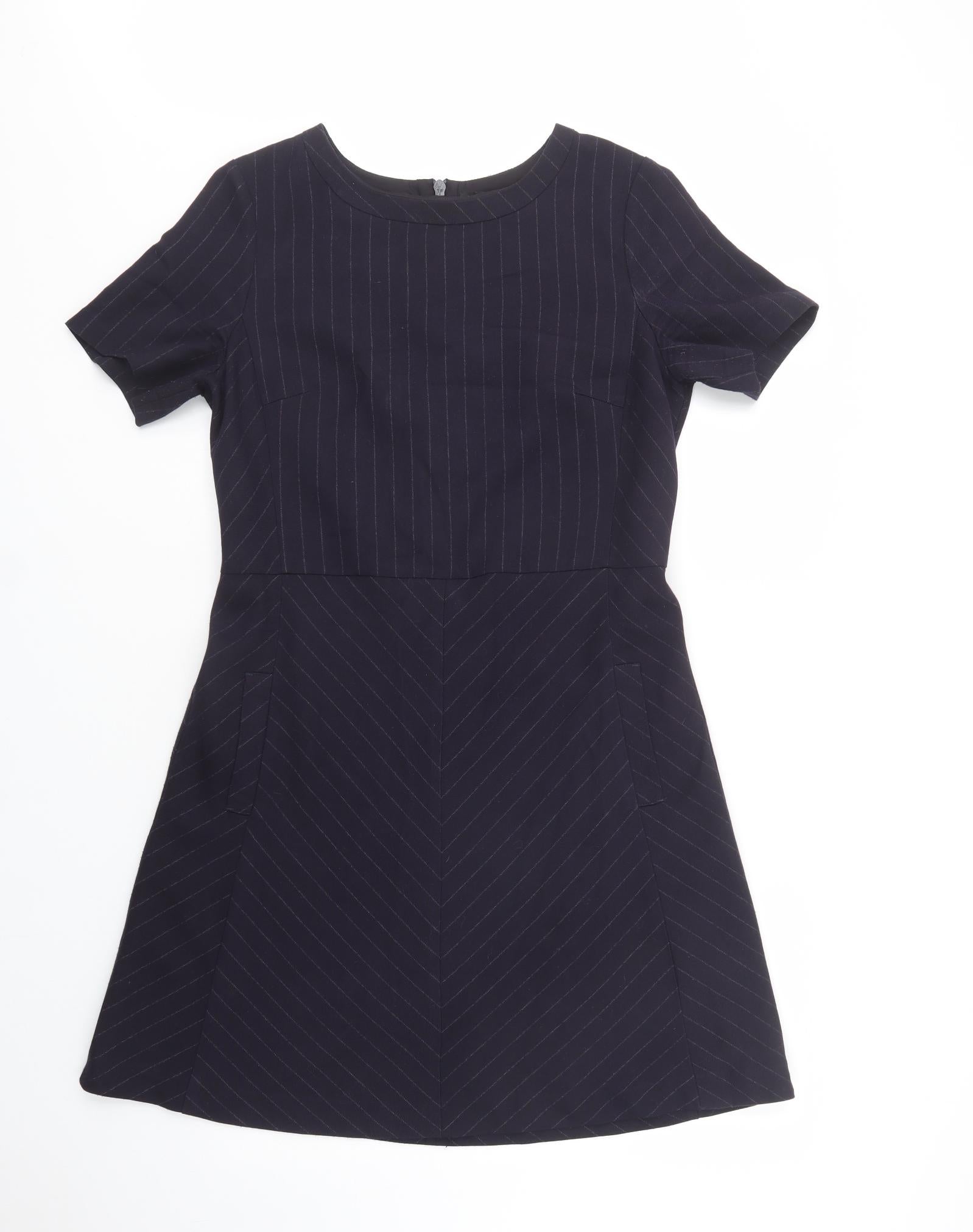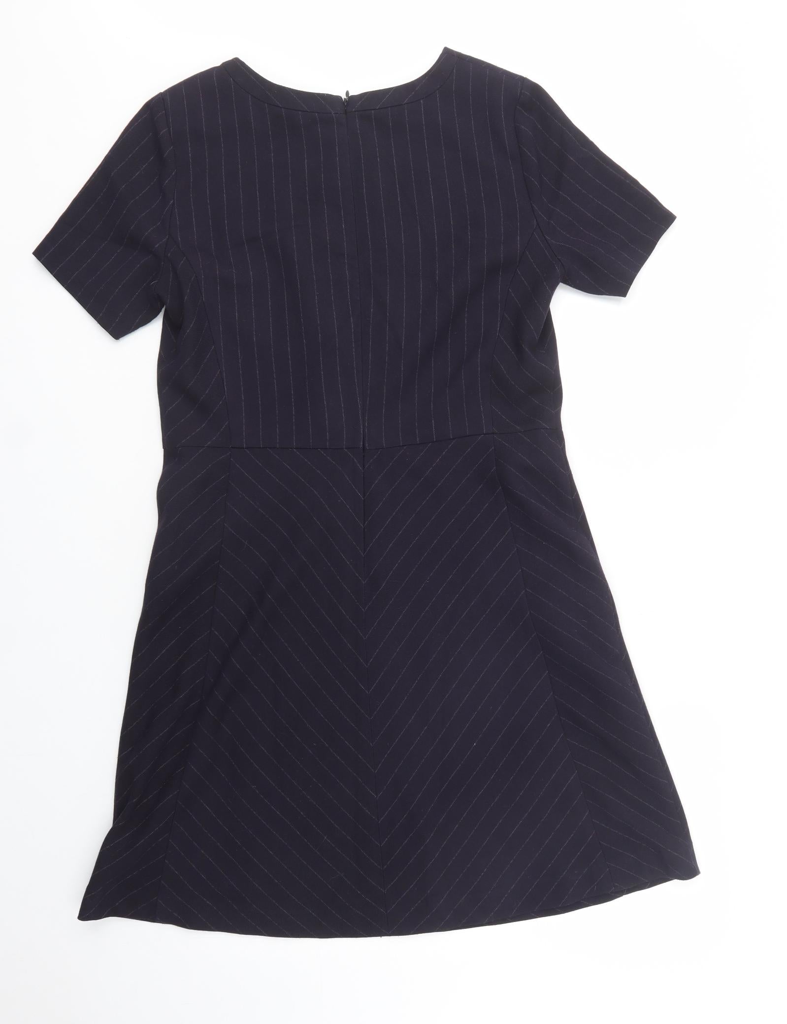 Womens Blue Striped Polyester Fit & Flare Size 14 Boat Neck Zip