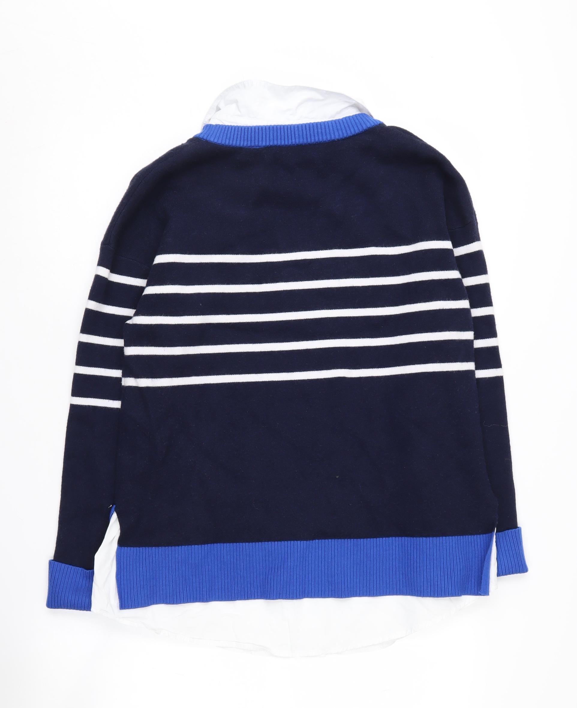 Goose Collection Women Blue Striped Cotton Pullover Jumper Size M
