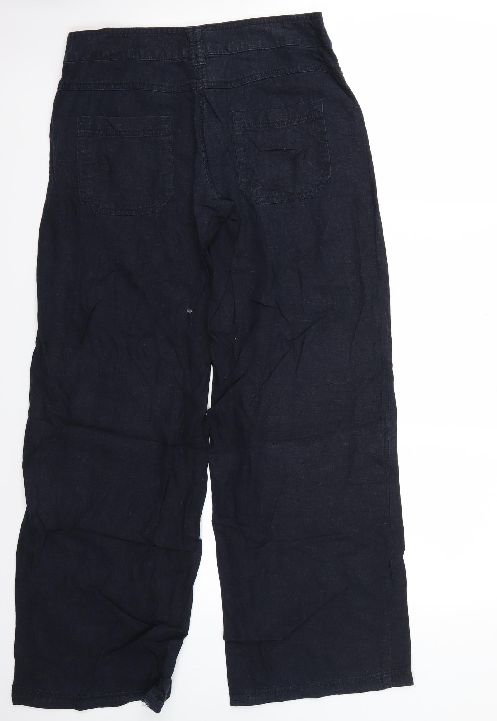 Massimo Dutti Women's Blue Cropped Wide-Leg Trousers Size 8