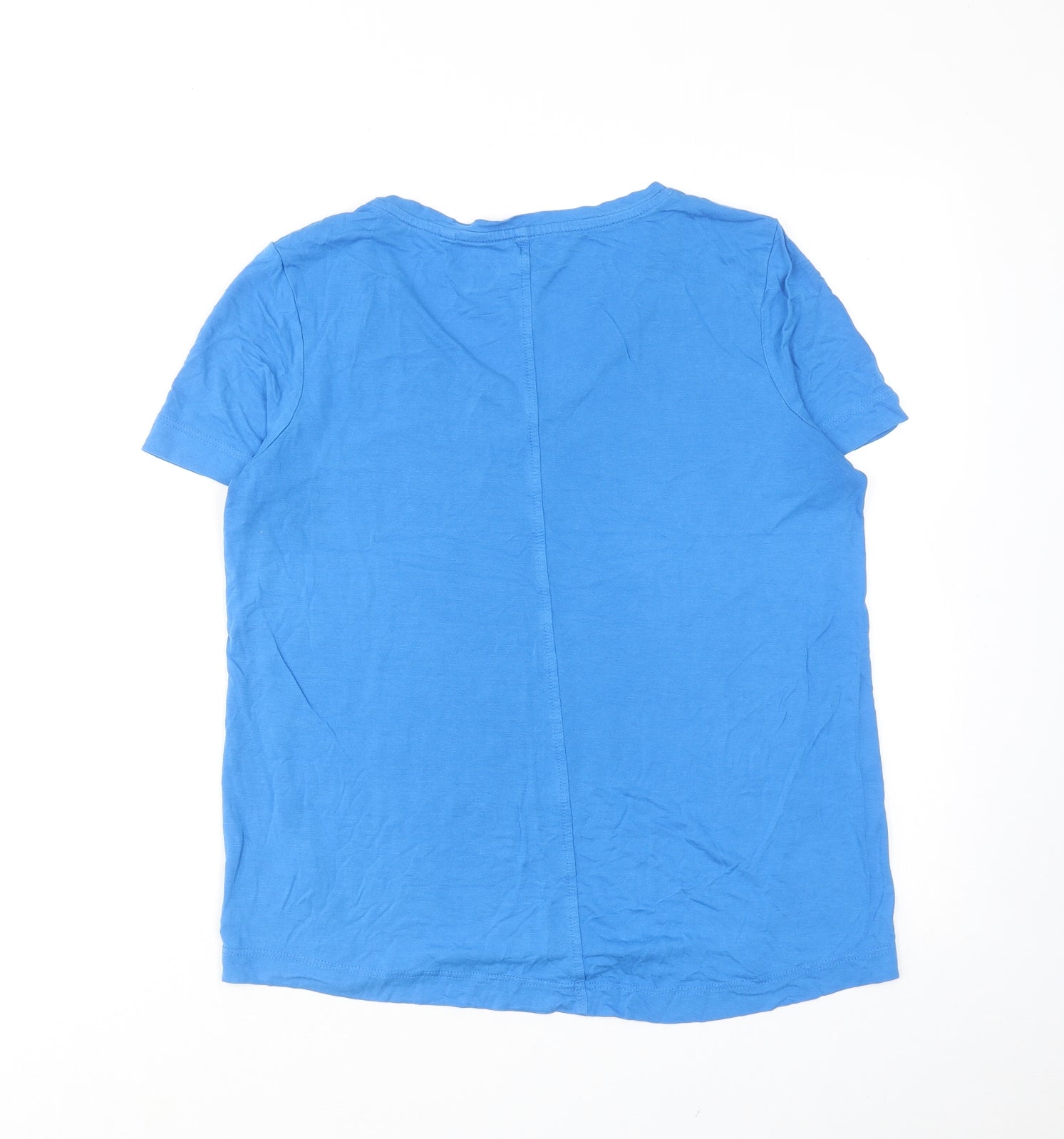 Womens Blue Viscose Basic T-Shirt Size 12 V-Neck