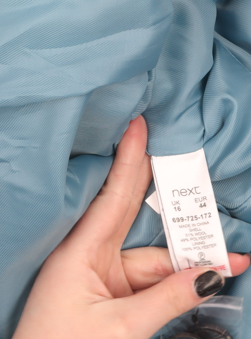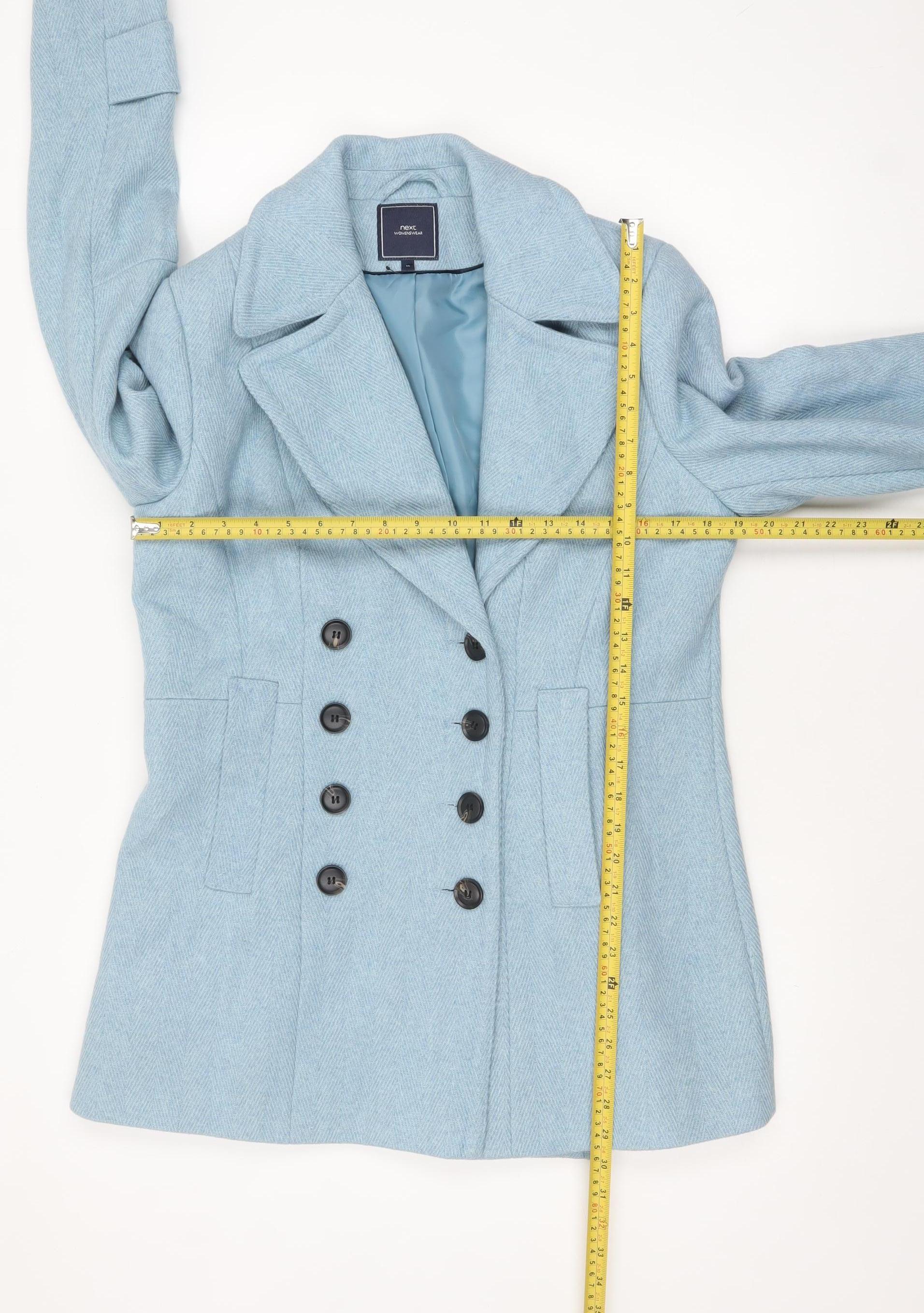 Next Womens Blue Wool Blend Pea Coat Size 16 Double Breasted