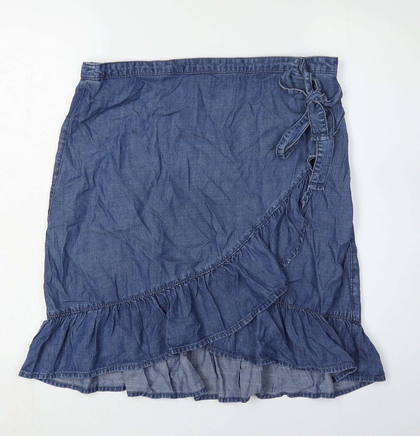 Next Women's Blue Wrap Skirt, Size 14, Tie Accent
