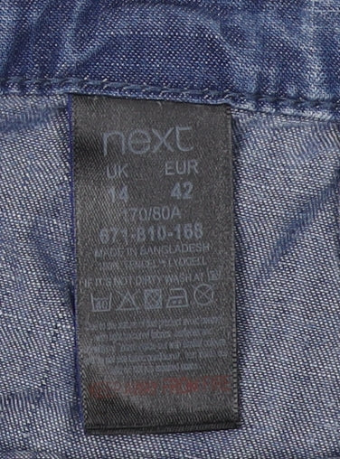 Discover effortless style with this chic wrap skirt from Next, tailored for women in size 14. Crafted from soft, breathable chambray Lyocell fabric, this blue skirt offers a smooth finish and comfortable wear. The simple tie closure allows for an adjustable fit, making it a versatile pick for casual outings. Its ruffle feature adds a playful touch, while the solid colour ensures easy pairing with a variety of tops and footwear. Suitable for all seasons, the skirt is machine washable for convenient care. Ideal for a relaxed yet sophisticated look, this piece is perfect for day-to-day wear or laid-back gatherings. Despite a few wrinkles, the skirt maintains excellent condition, making it a lovely addition to your wardrobe.
