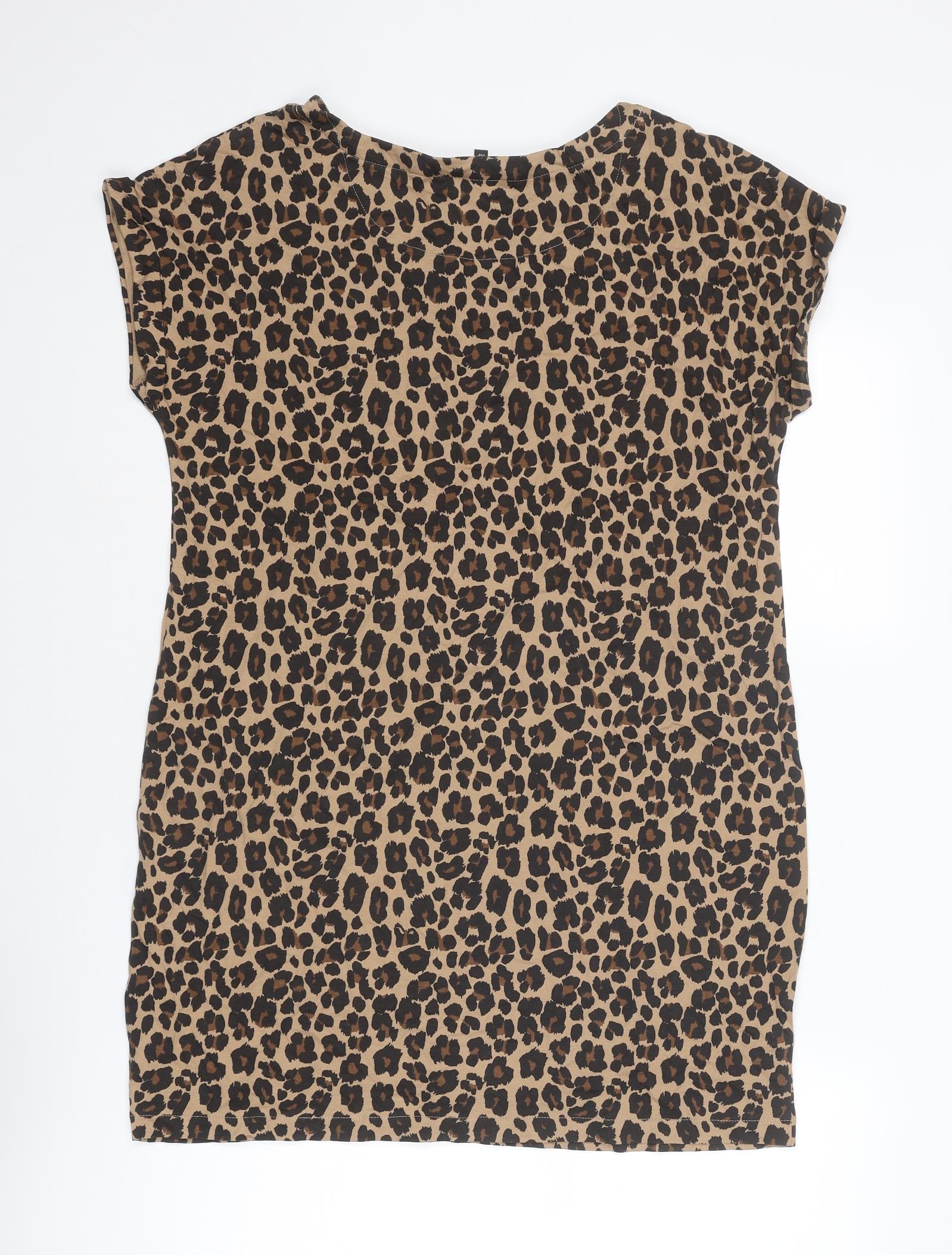 Womens Brown Animal Print Cotton Mini Size 14 Boat Neck Pullover - Leopard Print