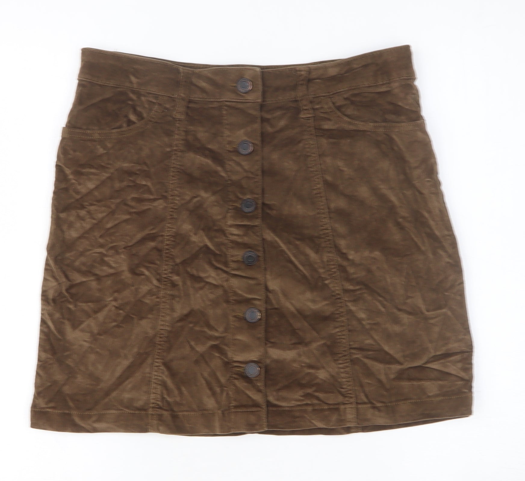 Womens Brown Cotton A-Line Skirt Size 12 Button
