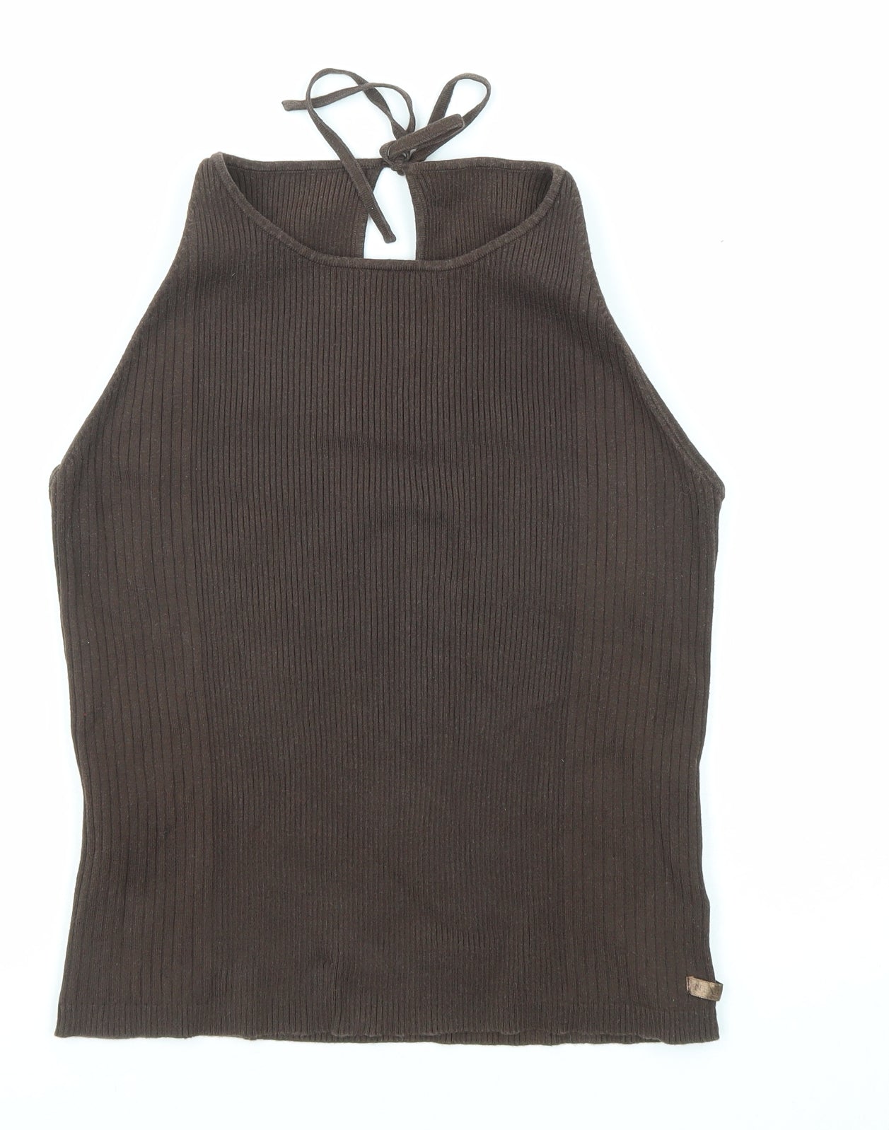 Womens Brown Cotton Basic Tank Size 14 Round Neck