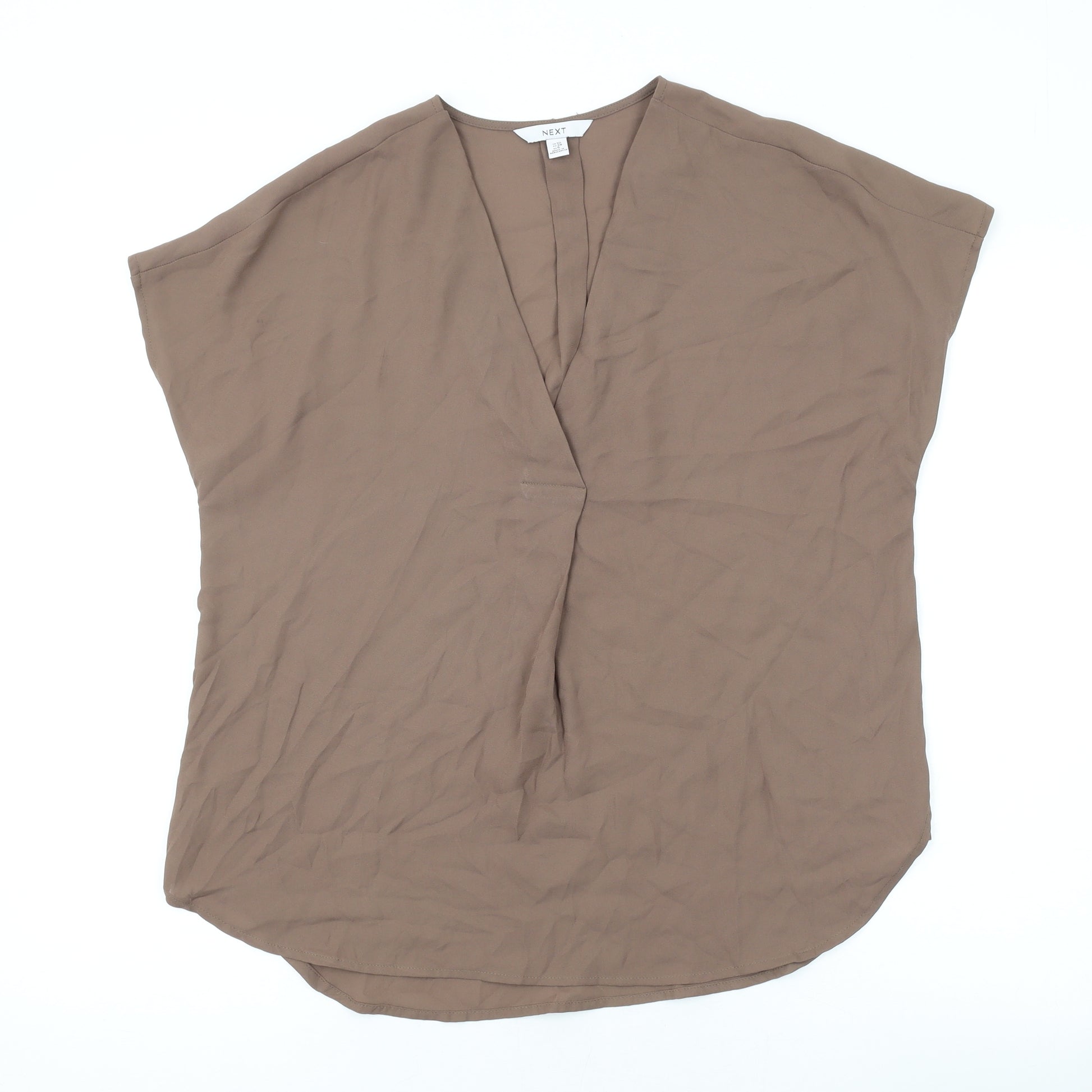 Womens Brown Polyester Basic T-Shirt Size 10 V-Neck