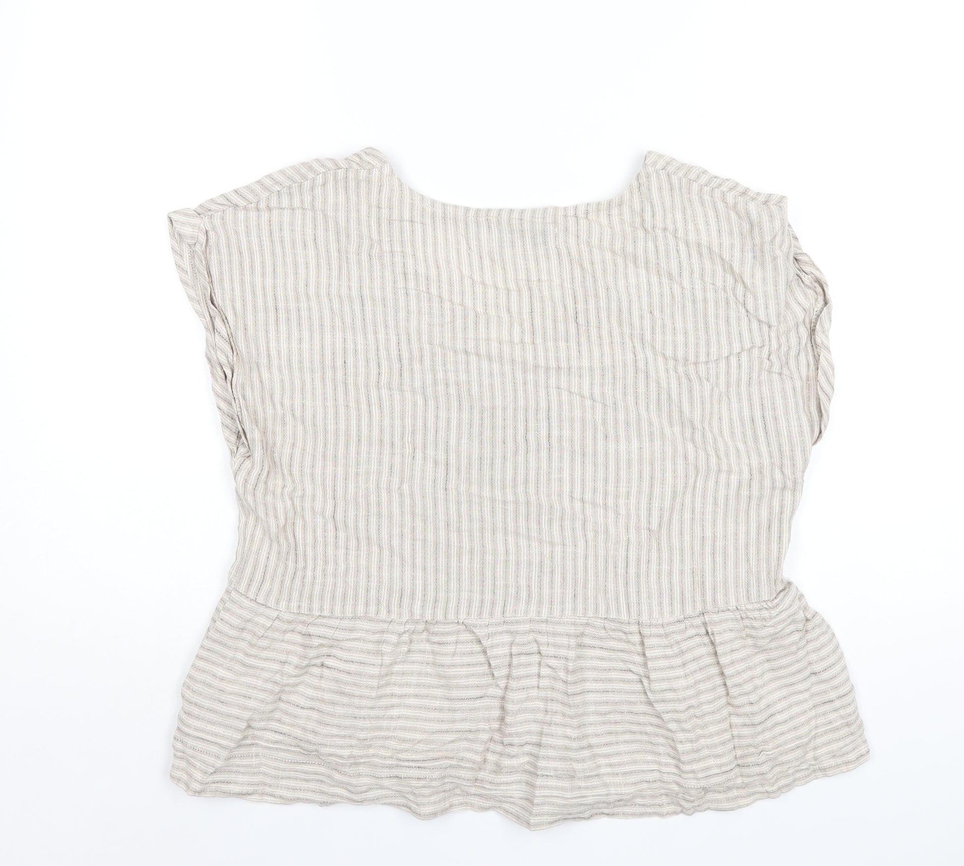 Womens Brown Striped Viscose Basic T-Shirt Size 12 V-Neck