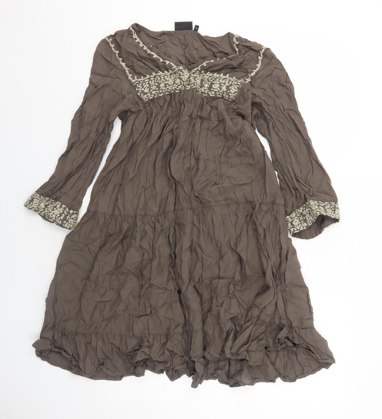 Womens Brown Viscose A-Line Size 14 V-Neck Pullover - Embroidered