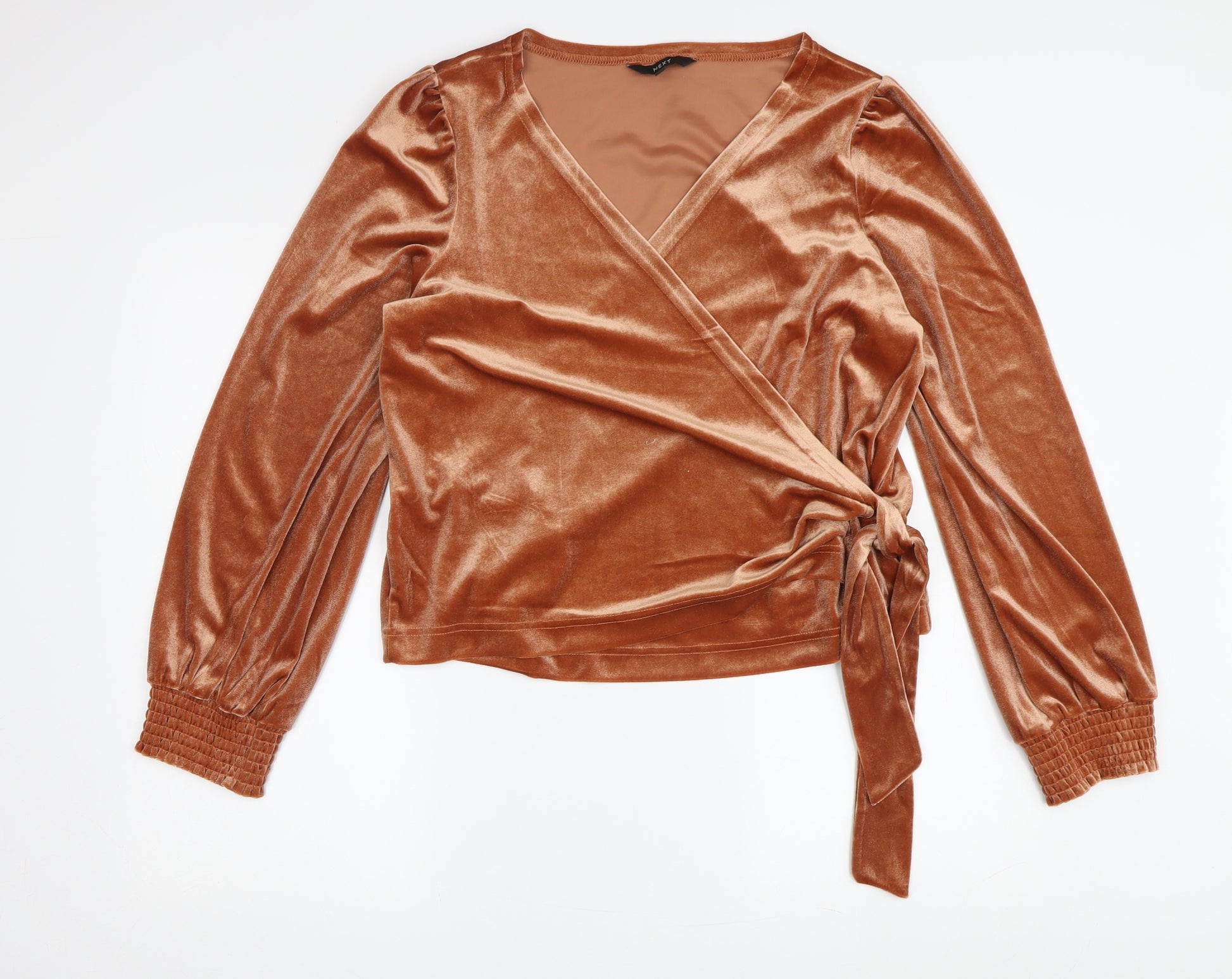 Elevate your wardrobe with this exquisite brown wrap top from Next, designed for both comfort and style. Perfectly tailored for women, this long-sleeved top features a luxurious velvet fabric that exudes sophistication. The rich brown colour complements any autumn or winter ensemble, making it a versatile piece for casual outings or cocktail parties. Crafted with a blend of polyester and elastane, this blouse offers exceptional comfort and ease of movement. The V-neckline and puff sleeves add a touch of elegance, while the wrap style ensures a flattering fit for any body shape. Easy to care for, this machine-washable top promises durability and fantastic wearability. Whether paired with jeans for a chic casual look or a skirt for a more formal occasion, this Next wrap top is an essential addition to your fashion collection.
